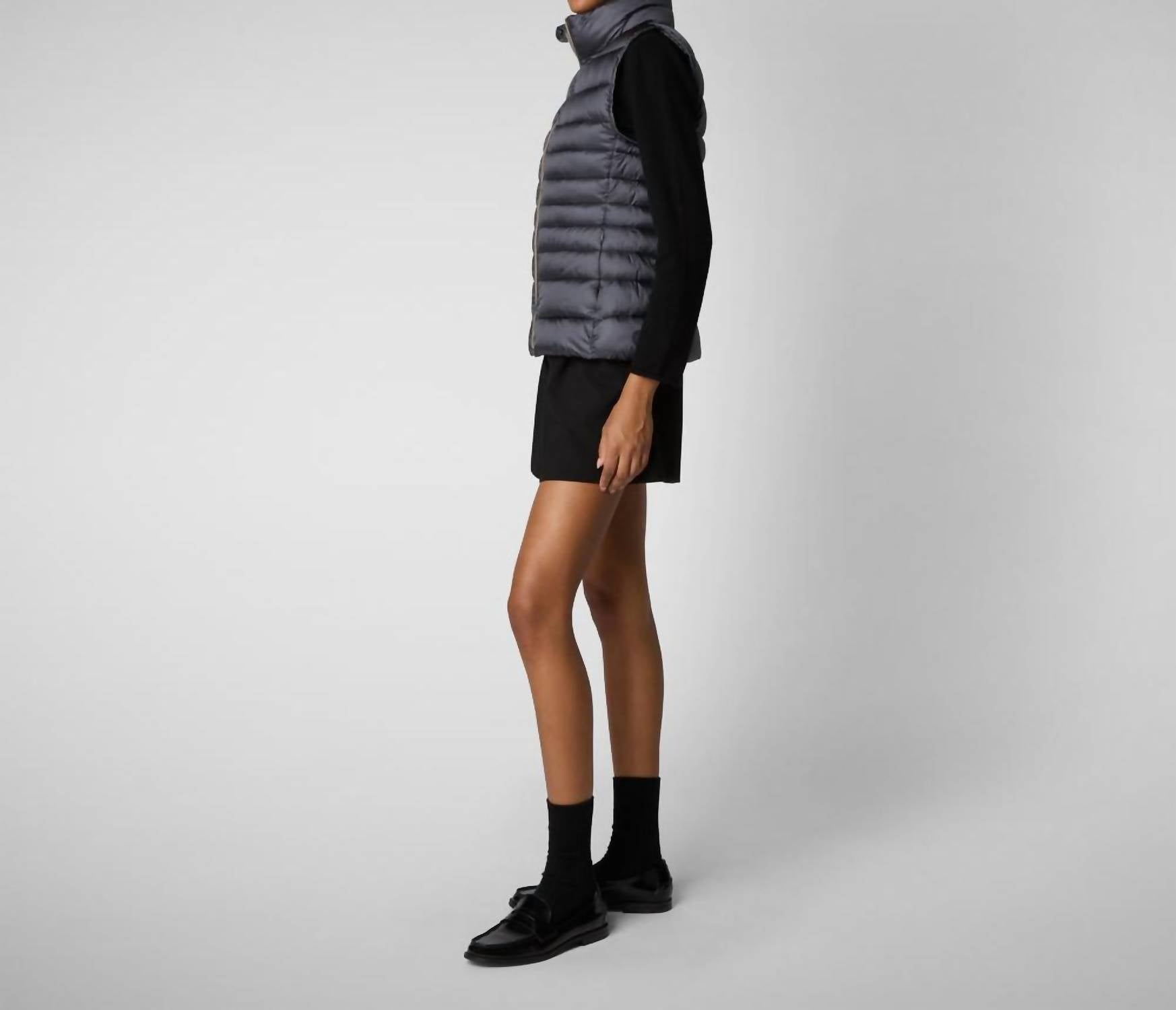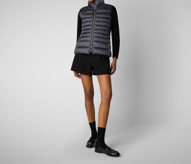 Elevate your layering game with the Lynn Vest by SAVE THE DUCK, a perfect blend of style and comfort in Ebony Grey. This sleeveless quilted vest features a cozy standing collar and a shiny two-way zip closure, complemented by hidden zipped low side pockets for a sleek finish. Crafted from high-density 20dX20d nylon, it promises weightlessness and fluffiness while ensuring water repellency and wind protection. Care: Machine wash up to 30°C/86°F, line dry in the shade, and avoid tumble drying or ironing.