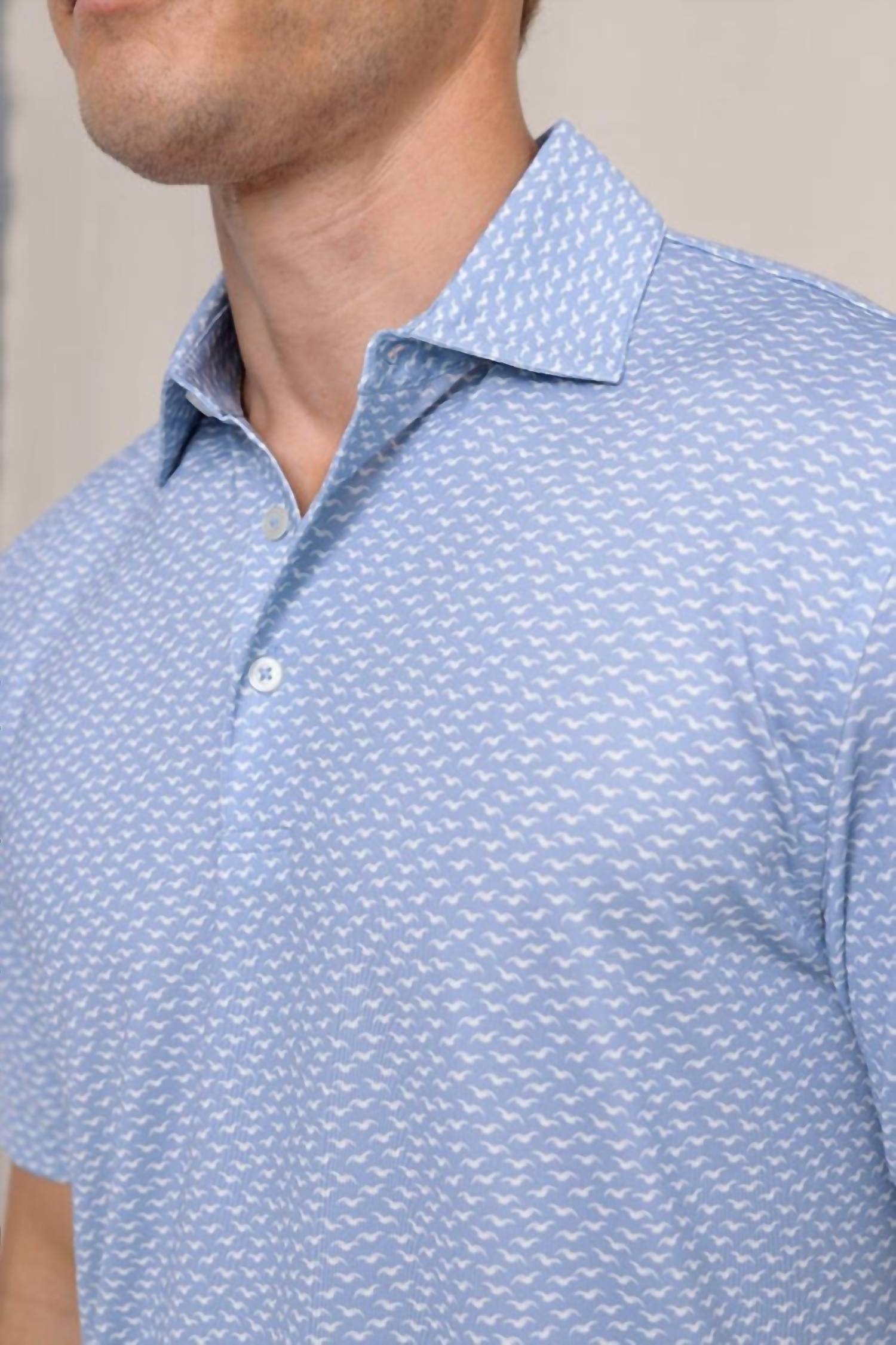 Bring a laid-back style to your collection with the Driver Fall Flock polo. The Flock-printed design brings coastal charm to your look, while the button-down construction adds an element of sophistication. Style the drop-tail hem tucked or untucked to take your outfit from smart to casual. Stretch-enhanced material keeps you comfortable and allows a full range of movement for total comfort.