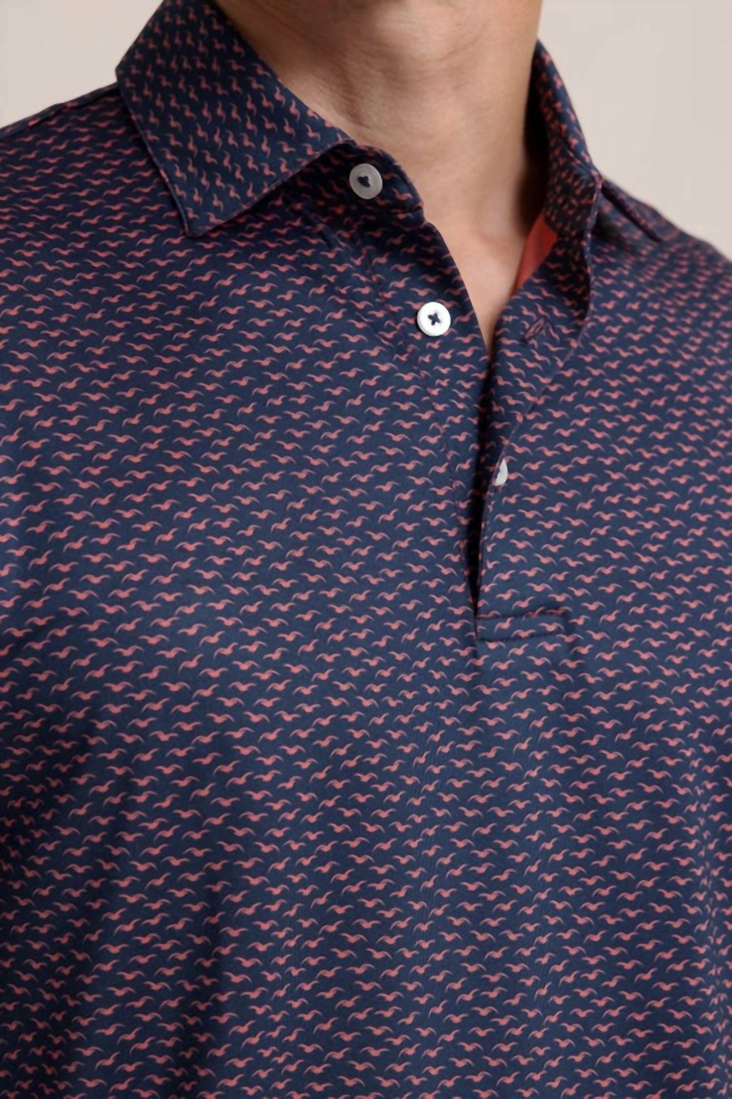 Bring a laid-back style to your collection with the Driver Fall Flock polo. The Flock-printed design brings coastal charm to your look, while the button-down construction adds an element of sophistication. Style the drop-tail hem tucked or untucked to take your outfit from smart to casual. Stretch-enhanced material keeps you comfortable and allows a full range of movement for total comfort. Machine Wash