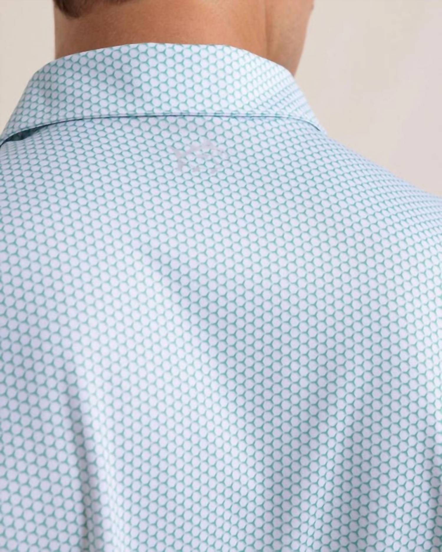 Wicking. Stretch. UV Protection. More Responsible Materials. Self-collar. Three-button placket. Drop-tail hem. Internal collar stays in the collar. Branded imitation mother-of-pearl buttons. Outline Skipjack heat seal on back neck. Machine Wash.