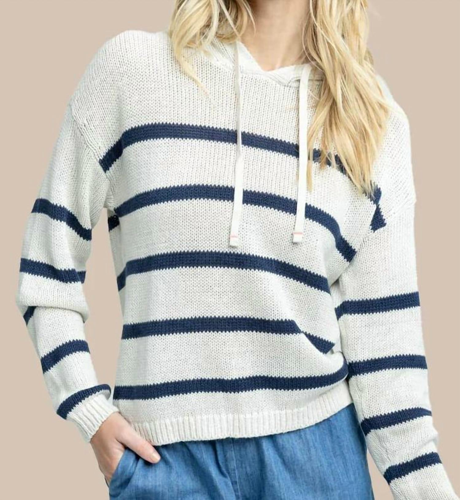 The ultimate go-to sweater, expertly crafted to provide the perfect combination of warmth and style. Its classic design and soft fabric make it a must-have addition to your wardrobe. Introducing the Everlee Striped Hoodie Sweater by Southern Tide, designed for women who appreciate preppy style with a touch of sophistication. This long sleeve sweater features a nautical-inspired striped pattern and a hooded neckline, making it perfect for Easter travel or cool spring evenings. Crafted from a comfy blend of 58% cotton and 42% linen, it boasts ribbed cuffs and hem for added flair. Closure: Pull-on. Care: Machine wash cold on a gentle cycle, do not bleach, lay flat to dry, and use a cool iron if needed.