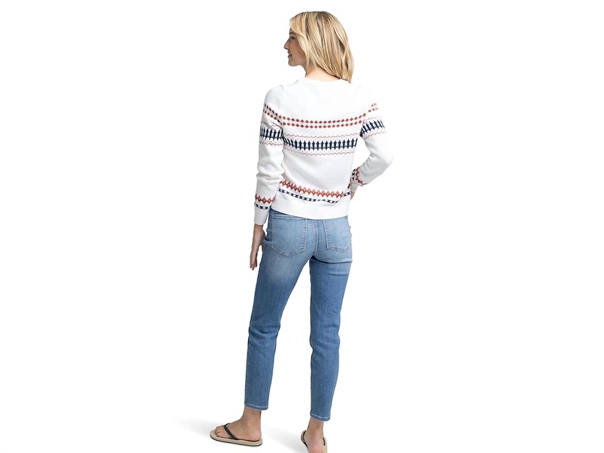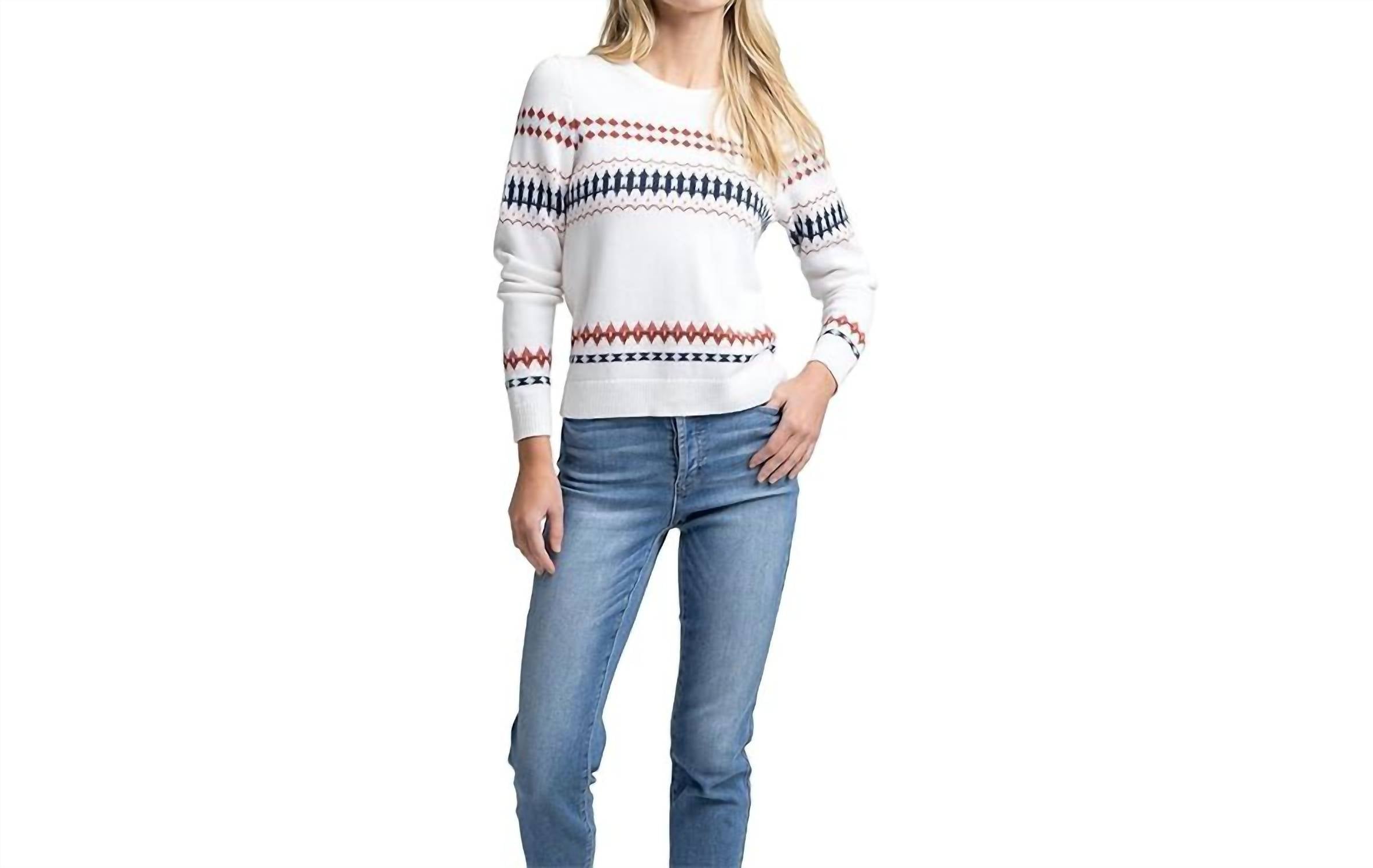 Introducing the Southern Tide Long Sleeve McKenna Fair Isle Sweater in a delightful Marshmallow hue. Crafted from a luxurious blend of 95% organic cotton and 5% cashmere, this sweater offers a soft touch paired with a chic jacquard pattern. With its crewneck design, ribbed cuffs, and straight ribbed hemline, it promises a relaxed fit ideal for any season. Closure: Pull on. Care: Machine wash cold with like colors, do not bleach, do not tumble dry, lay flat to dry, cool iron if needed. Imported.