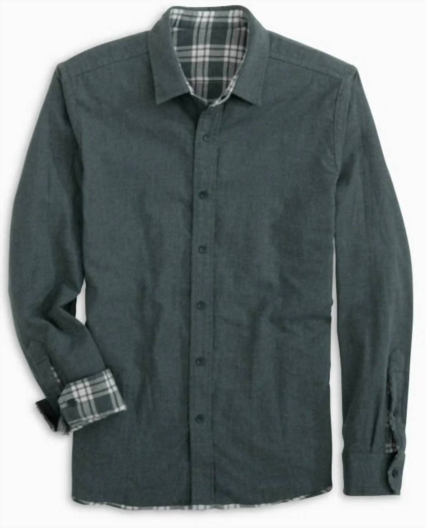 Break out of the basics with our reversible long-sleeve sports shirt. Designed with a heathered plaid on one side and a complementary solid color on the other, it offers several style options in one piece (it can even be worn as a lightweight Shacket). Made from 100% cotton with a non-button-down collar, it offers the Southern Tide comfort you expect.