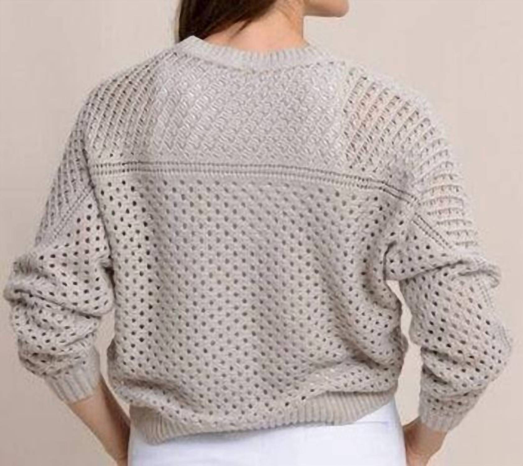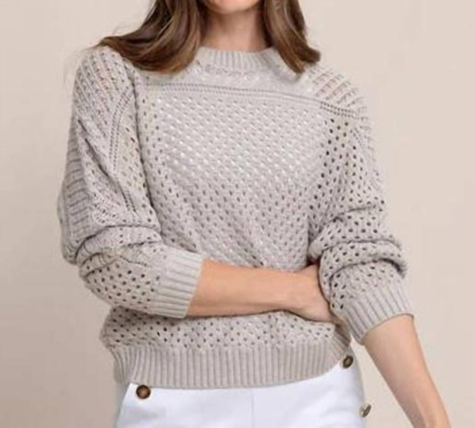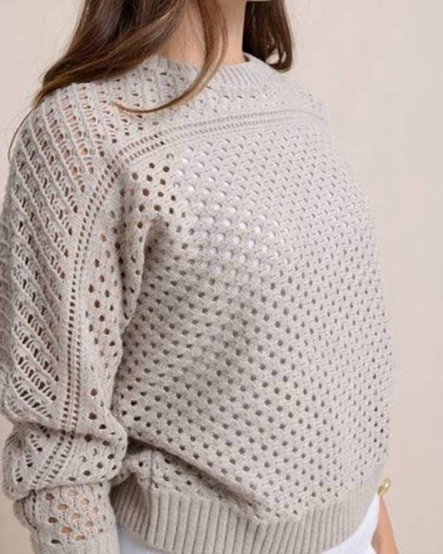 Stay warm and stylish in this versatile and effortlessly cool knitwear staple. Wear it alone or layered, it's the perfect sweater for the season and you'll wish you had it in every color. This woman's sweater is a beautifully designed piece that combines airy elegance with effortless style. Perfect for those transitional days, this sweater offers a sophisticated take on layering. Open Stitch. Rib at neck, cuffs, and hem. Machine Wash.