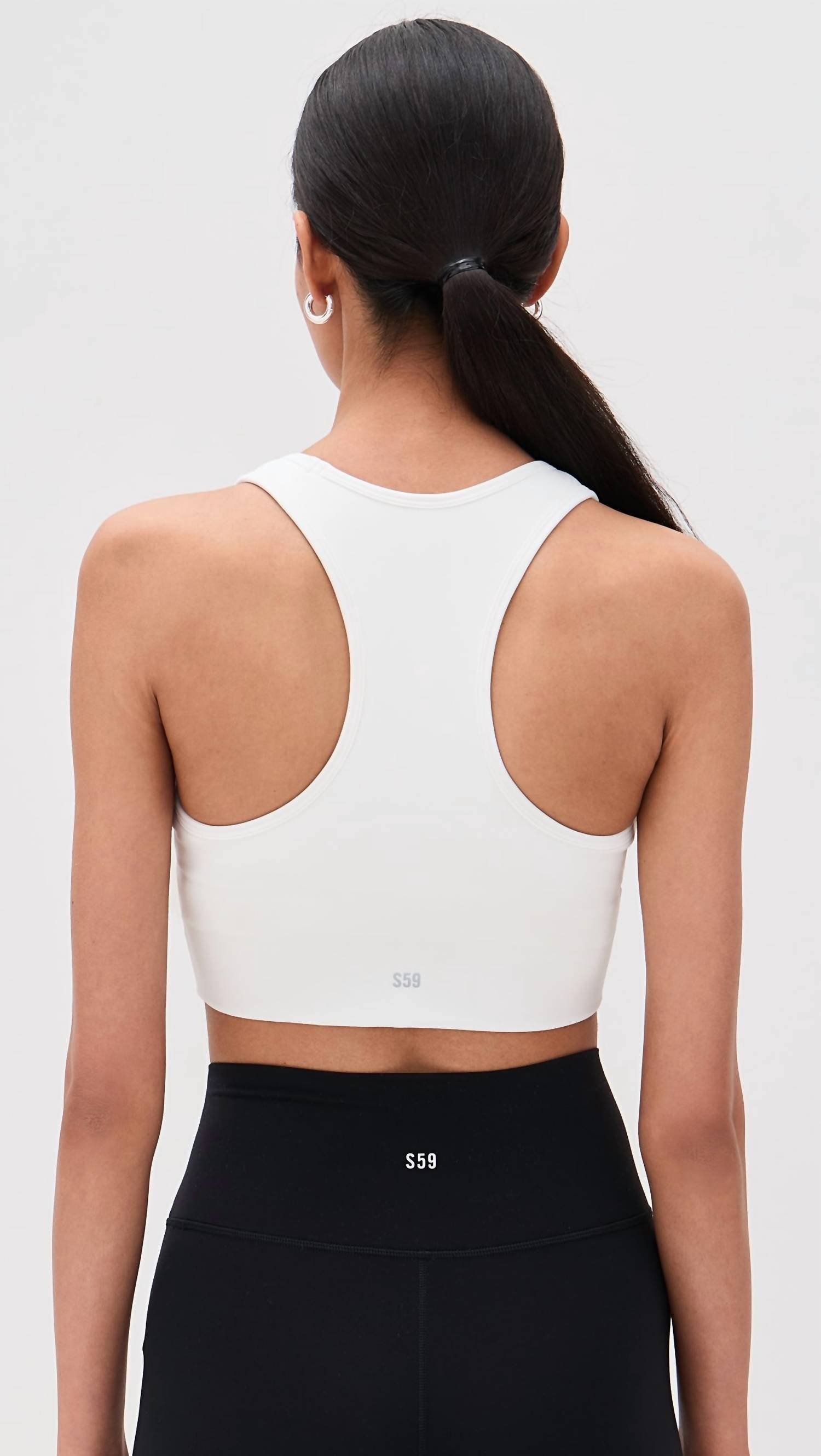 Elevate your workout wardrobe with the Airweight Bra With Ruching by SPLITS59, crafted for superior comfort and support. This crop bra, made from a luxurious nylon blend, features built-in sports bra support and a stylish ruched front. Composition: 81% Nylon, 19% Spandex. Origin: Made in China. Care: Machine wash. Designed with moisture-wicking and quick-dry technology, this bra is perfect for hot yoga, barre, and pilates. Measuring 13 inches in length, it embodies the perfect blend of style and performance, especially for your energetic summer sessions.