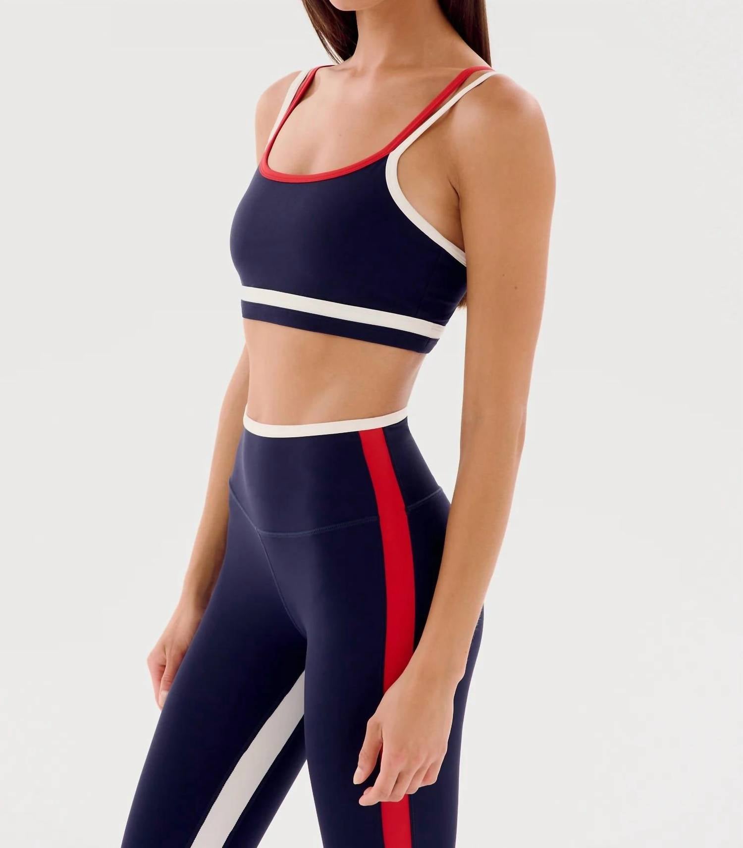 A sports bra that has it all - style, function and support. Experience unmatched comfort and confidence with the Eva Rigor Double Strap Bra by SPLITS59. This sports bra, crafted with a blend of 62% Nylon and 38% Elastane, features a double shoulder strap design in a striking Indigo and White color combination. Unpadded cups provide a sleek silhouette, while the breathable material supports a variety of activities, including running and yoga. Made in China, this solid pattern bra is easy to care for with simple machine wash instructions.
