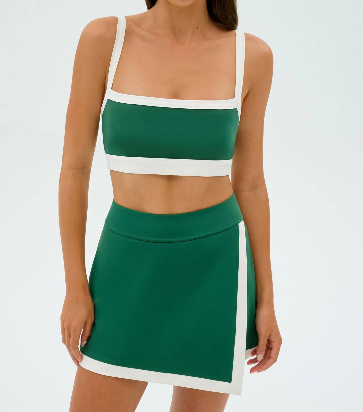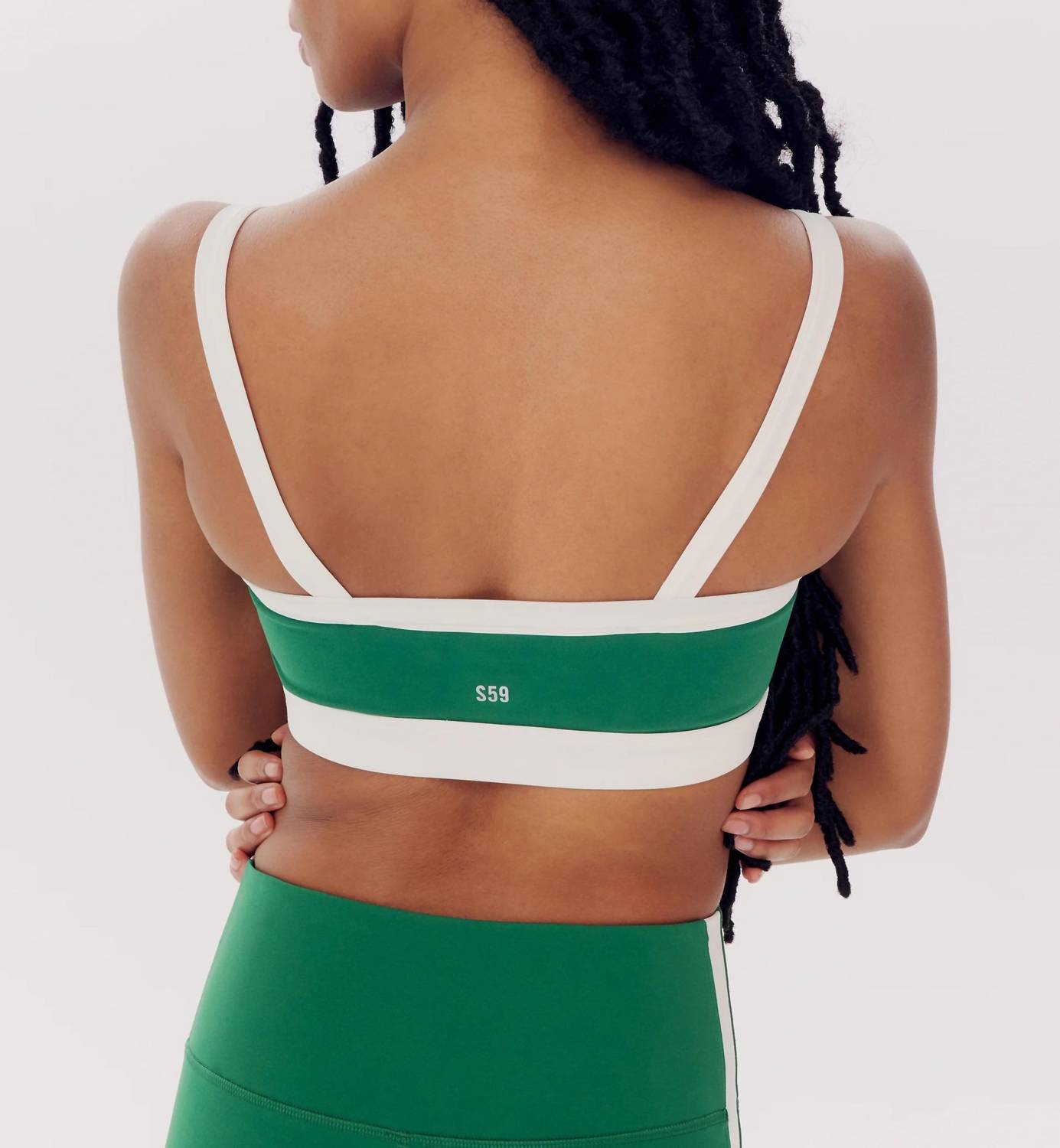 Elevate your workout style with the SPLITS59 Monah Rigor Bra in vibrant Arugula/White, perfect for women embracing the athleisure trend. Ideal for summer fitness activities, this solid-pattern sports bra is your go-to for everything from running to yoga and CrossFit. Hand wash is recommended to maintain its vibrant look and durable support. The model, with a height of 5'9", a bust of 30", a waist of 25", and hips of 35", wears a size small.