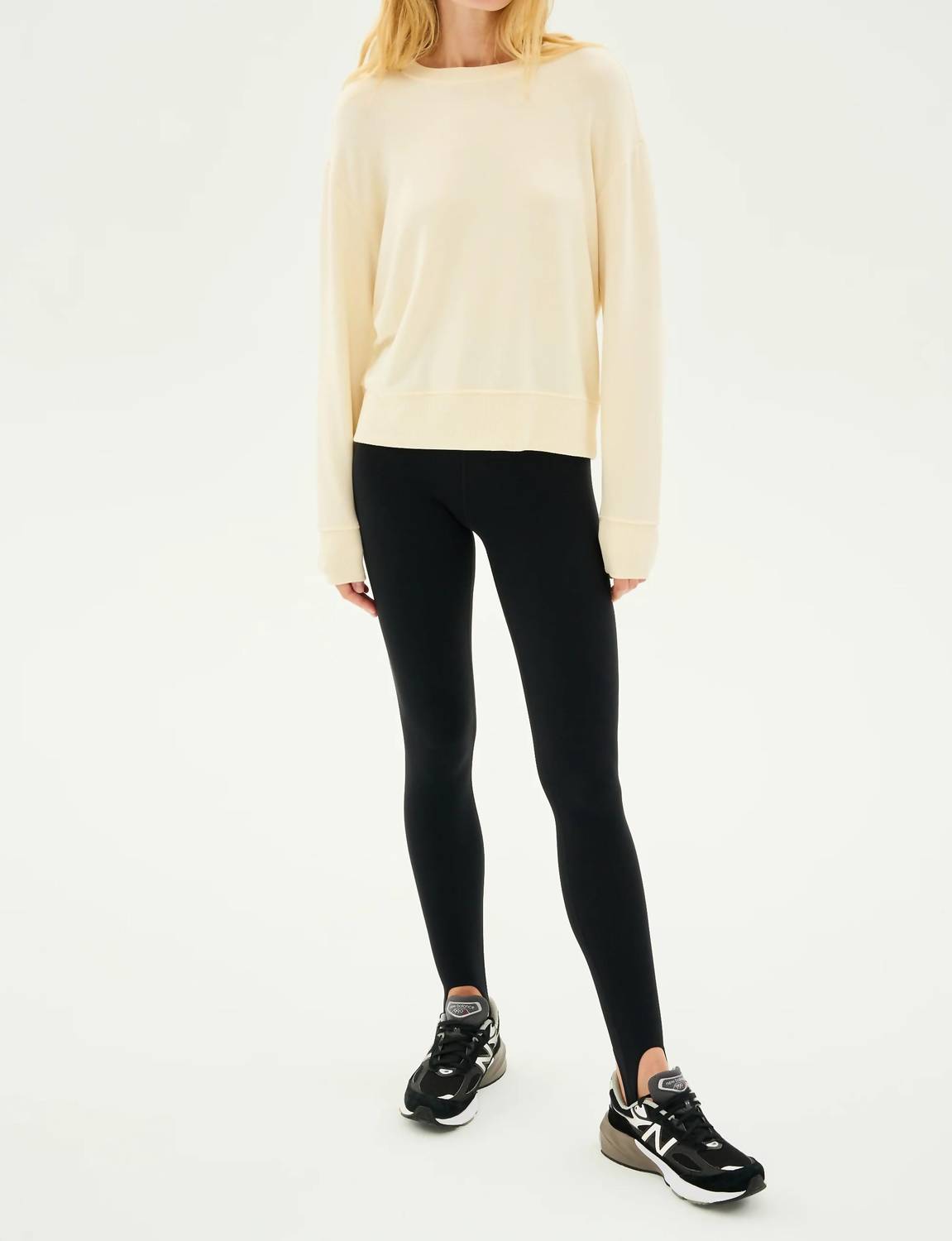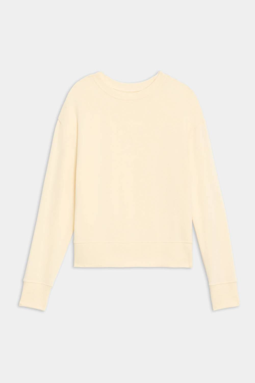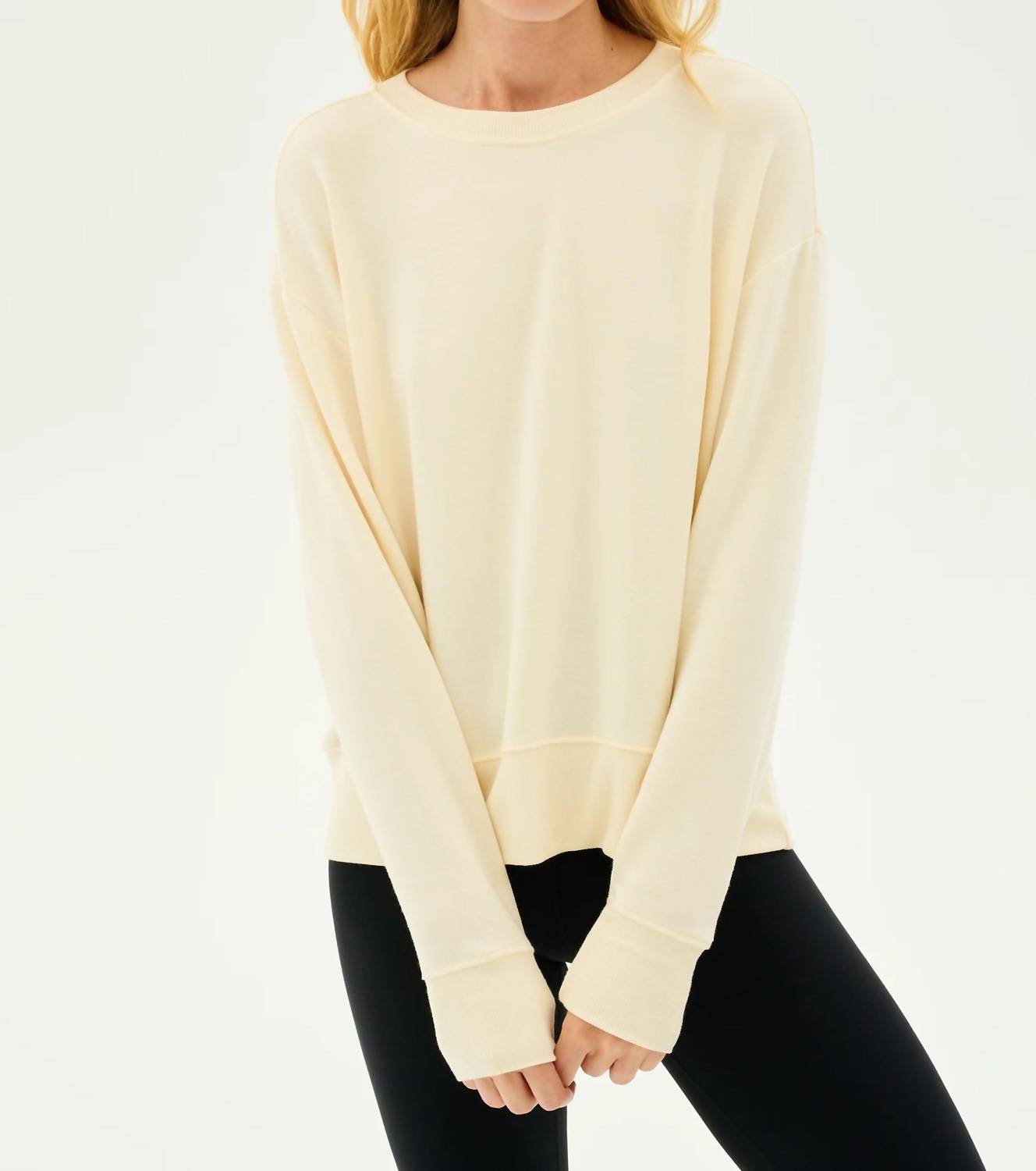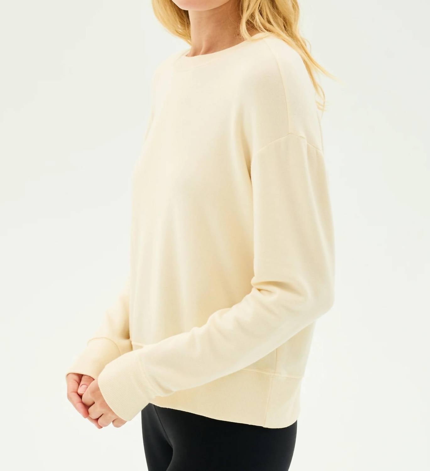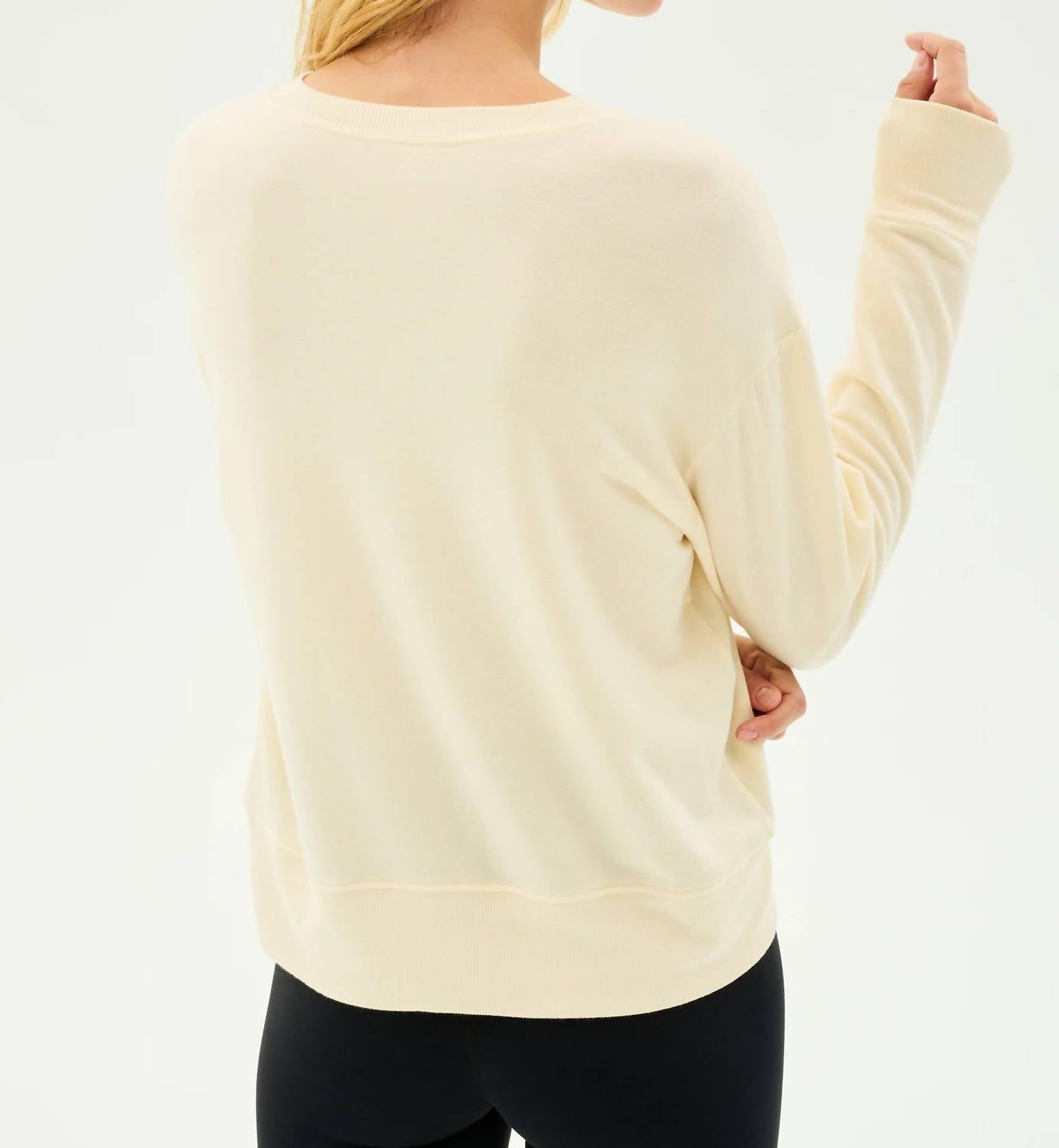 Elevate your athleisure wardrobe with the Sonja Fleece Sweatshirt by SPLITS59 in a minimalist solid Creme hue. Designed with long sleeves and crafted from ultra-luxe fleece, this crewneck pullover offers a soft, versatile fit perfect for a variety of activities. Made with care in Los Angeles, it features dropped sleeves, ribbed hems, and sleeve cuffs with a comfortable pull-on closure. Make this your go-to piece for its unrivaled style and practicality.