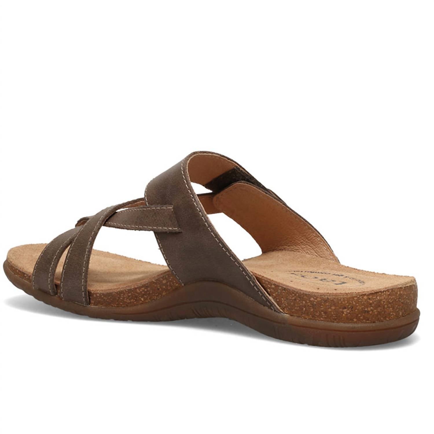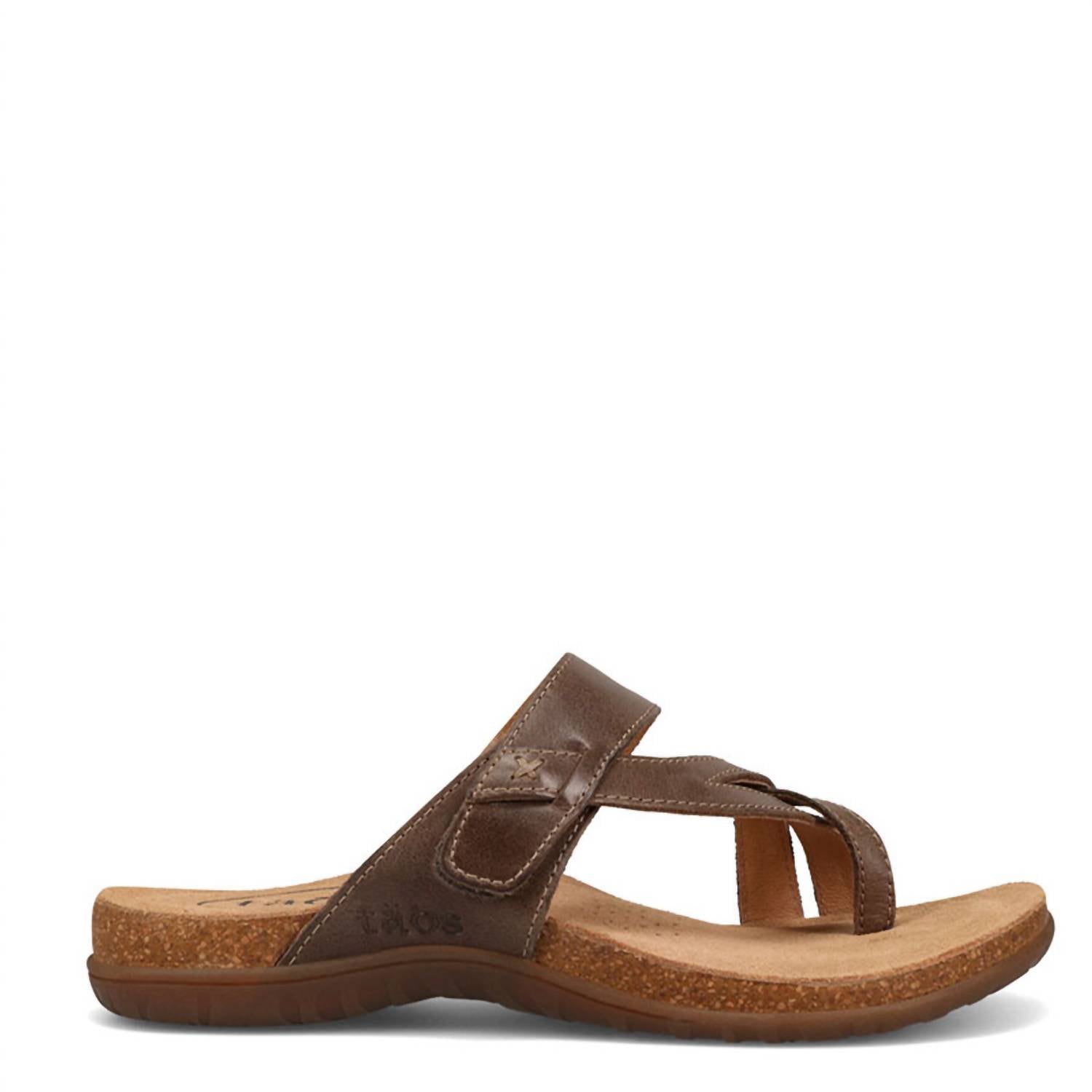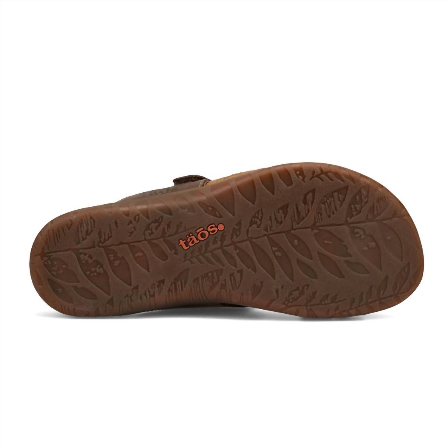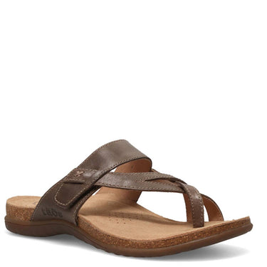 Experience the Taos Women's Perfect Sandal in a chic Mocha hue, expertly crafted for your summer travel adventures. These sandals provide remarkable arch and metatarsal support, with suede footbed lining and forefoot cushioning for all-day comfort. The open-toe design features a flat heel at a height of 1/2", paired with a flexible, durable rubber outsole that keeps each shoe lightweight at just 6.4 oz. Closure: Hook and loop. Care: Simply buff with a leather cleaner or polish and wipe off with a dry cloth.