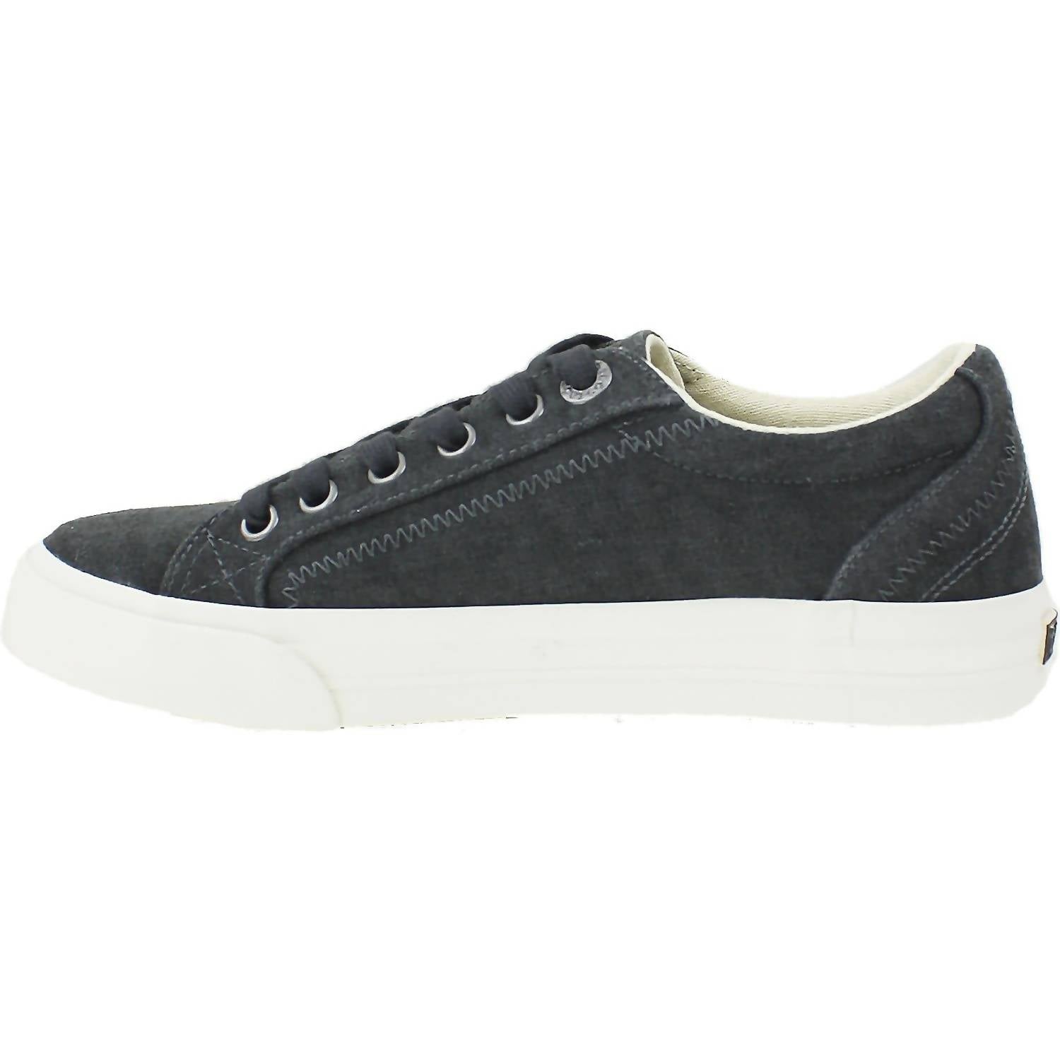 Introducing the Women's Plim Soul Sneaker by Taos, a stylish canvas lace-up sneaker in charcoal designed for optimal comfort and support. This sneaker features a canvas upper and lining with a polyurethane and canvas-covered insole, boasting built-in arch and metatarsal support. The Soft Support technology, with its Cool Recovery Foam, ensures lasting comfort alongside the flexible, durable rubber outsole. Ideal for streetwear and vacation occasions, it offers a round toe shape and flat heel, with customer feedback suggesting to size up by half a size for the best fit.