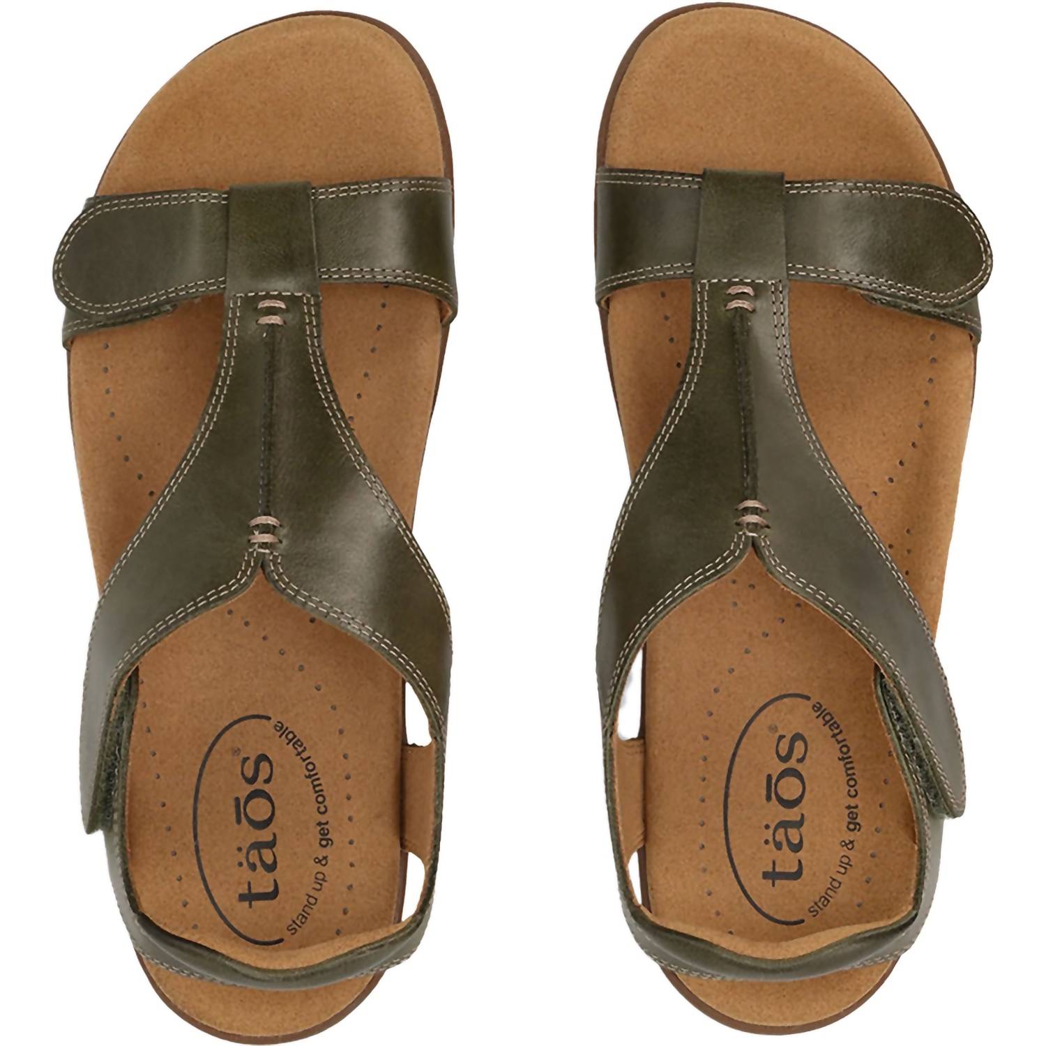 Elevate your summer style with the Taos Women's The Show Sandals in chic olive leather. Crafted from imported Italian leather, these sandals are designed for comfort with two adjustable straps and a cushioned, contoured footbed. The outsole is made from flexible, durable rubber, and the sandals feature a low 3/4" heel for all-day wear. The premium microfiber lining and Cool Recovery Foam insole ensure optimal comfort, while the supportive design provides arch and metatarsal support.