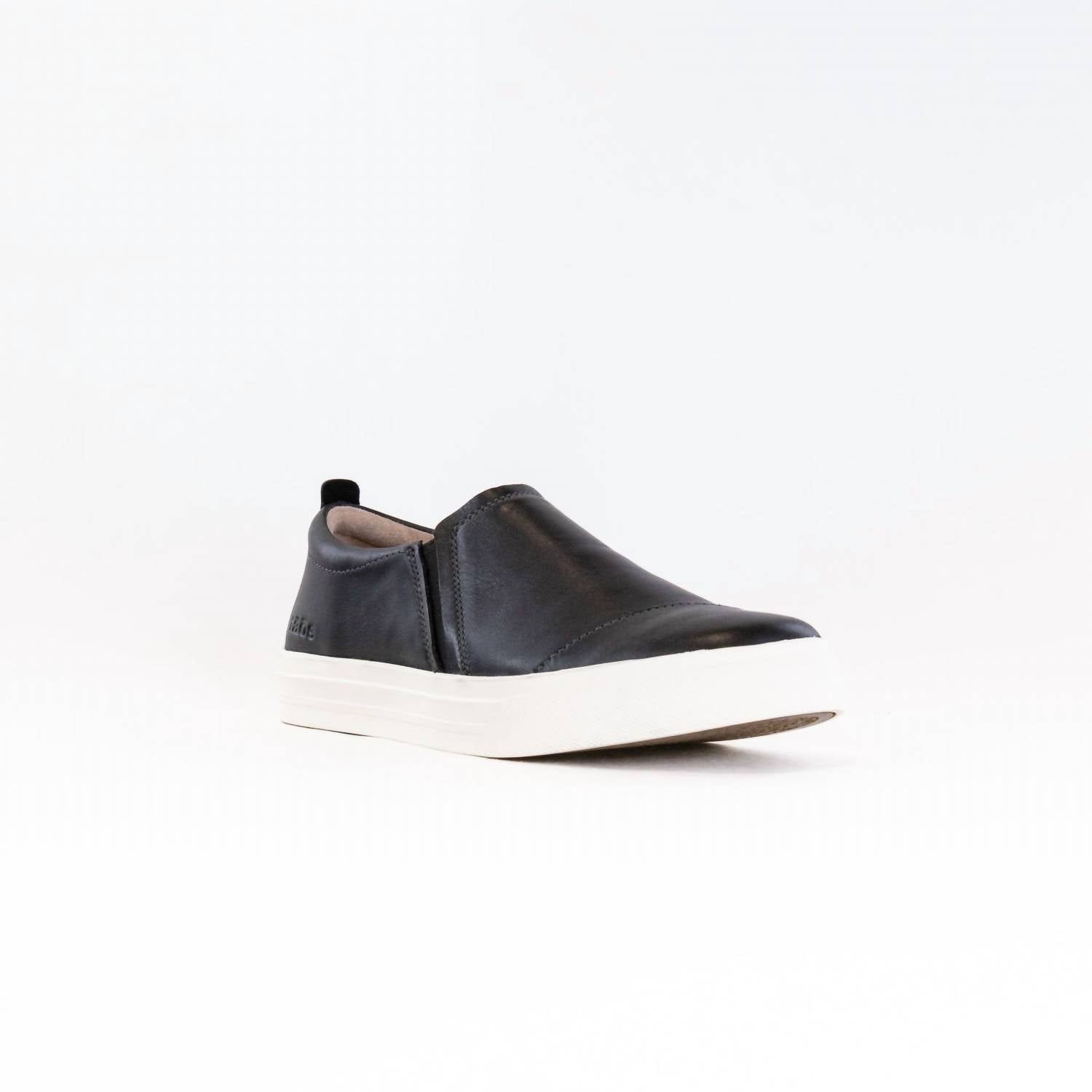 Introducing the Women's Twin Gore Lux Shoes from Taos, a minimalist sneaker perfect for any Spring occasion, including a stylish dinner party. These black slip-ons feature premium leather uppers and linings, with the convenience of elastic twin gore for easy wear. Equipped with Taos Curves & Pods® removable footbed, these shoes provide arch and metatarsal support with forefoot cushioning, complemented by a flexible and durable rubber outsole. They offer a comfortable flat heel at 1 1/8" height and weigh 10.4 oz, making them orthotic-friendly and ideal for everyday elegance.