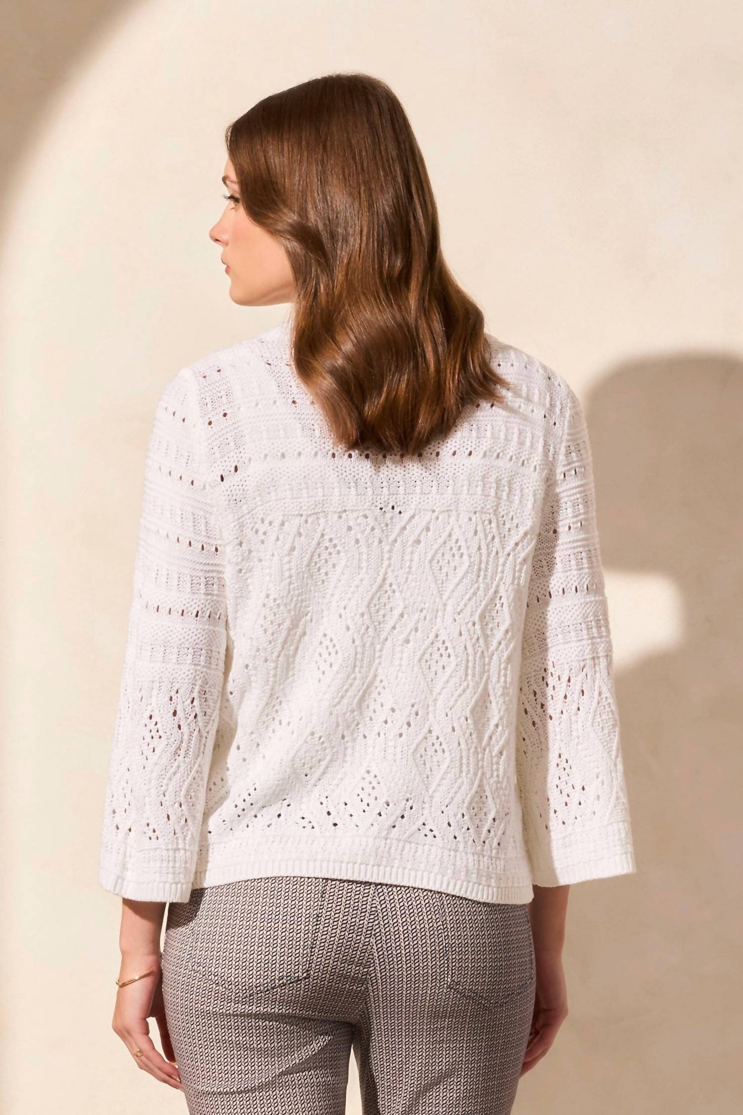 Tribal - Bell-sleeve Cable Knit Crew Neck Sweater