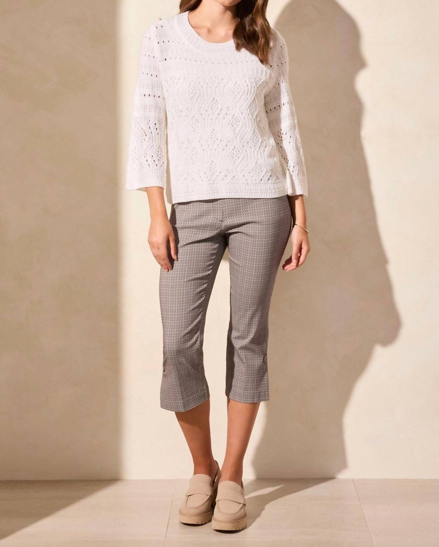 Elevate your fall wardrobe with the Bell-sleeve Cable Knit Crew Neck Sweater by TRIBAL, a perfect blend of coziness and sophistication. Featuring elegant three-quarter bell sleeves and a luxurious chunky crew neckline, this sweater is crafted from a soft blend of slub and lily yarns in a textured pattern. Made from high-quality acrylic material, this pull-on piece is ideal for holiday gatherings like Thanksgiving. Care instructions recommend hand washing with cold water and laying flat to dry for best results.