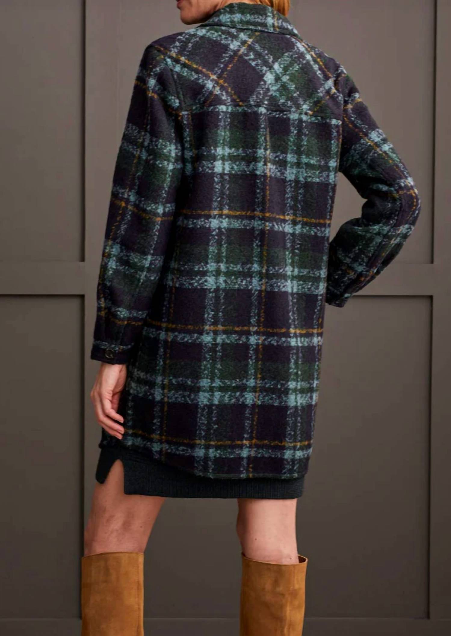 Enhance your casual look with this chic yet sporty jacket that boasts a soft, textured boucle finish in a rich tartan plaid featuring hues of blue, forest green, and a touch of caramel. Its button-front design, accented by a classic notched collar, includes two breast pockets and two on-seam pockets for practicality. With long sleeves sporting buttoned cuffs and a slightly rounded hem that extends below the hip, this tunic-length piece is designed for comfort and style. Available in sizes Medium (Bust 44”, Back Length 34”) and Xlarge (Bust 50”, Back Length 35”), it is made of 100% polyester and is machine washable on a delicate cycle, making it an ideal layering option for cooler weather. Imported, this is style #7183O-4380 from Tribal.