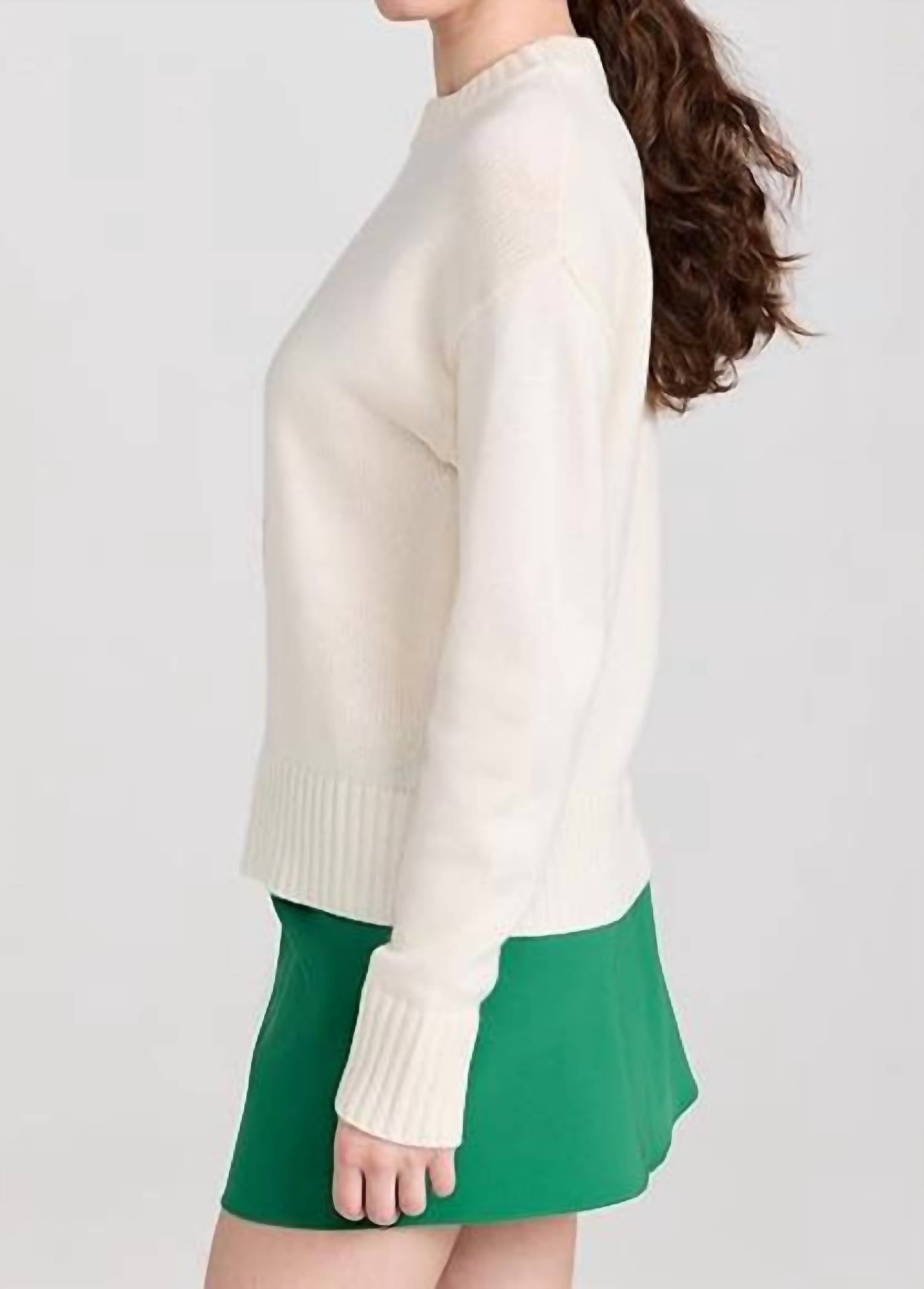 Introducing the Edie Namesake Knit Graphic Sweater by VARLEY, a sophisticated piece in egret/off white exclusively for women. This sweater offers a comfortable classic fit with long sleeves and features ribbed details at the neck, hem, and wrists. It is thoughtfully crafted from a blend of 50% viscose, 30% polyester, and 20% nylon for a soft and durable finish. Closure: Pull on. Care: Machine wash and tumble dry, ensuring ease and convenience for your Spring travels or Thanksgiving gatherings.