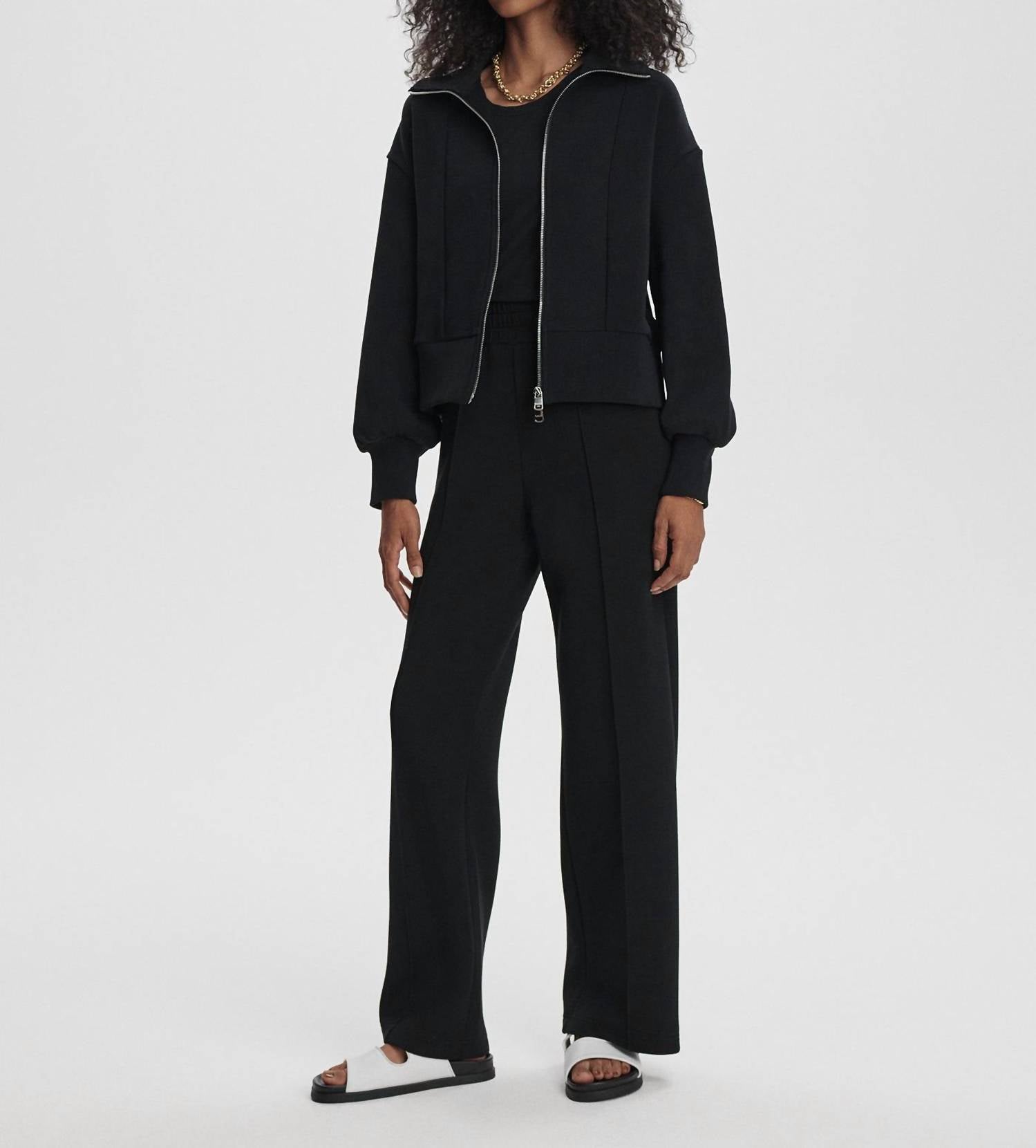 Whether you're running around town or lounging at home, this sweatshirt works for both. This piece boasts long balloon sleeves and a cutter silk feel thanks to its Cotton Blend, complemented by a tactful zip closure. Crafted with 53% Cotton, 46% Polyester, and 1% Elastane, it has a garment length of 21.65 inches, offering a modern cropped silhouette. Care for this elegant sweatshirt easily with machine wash instructions.