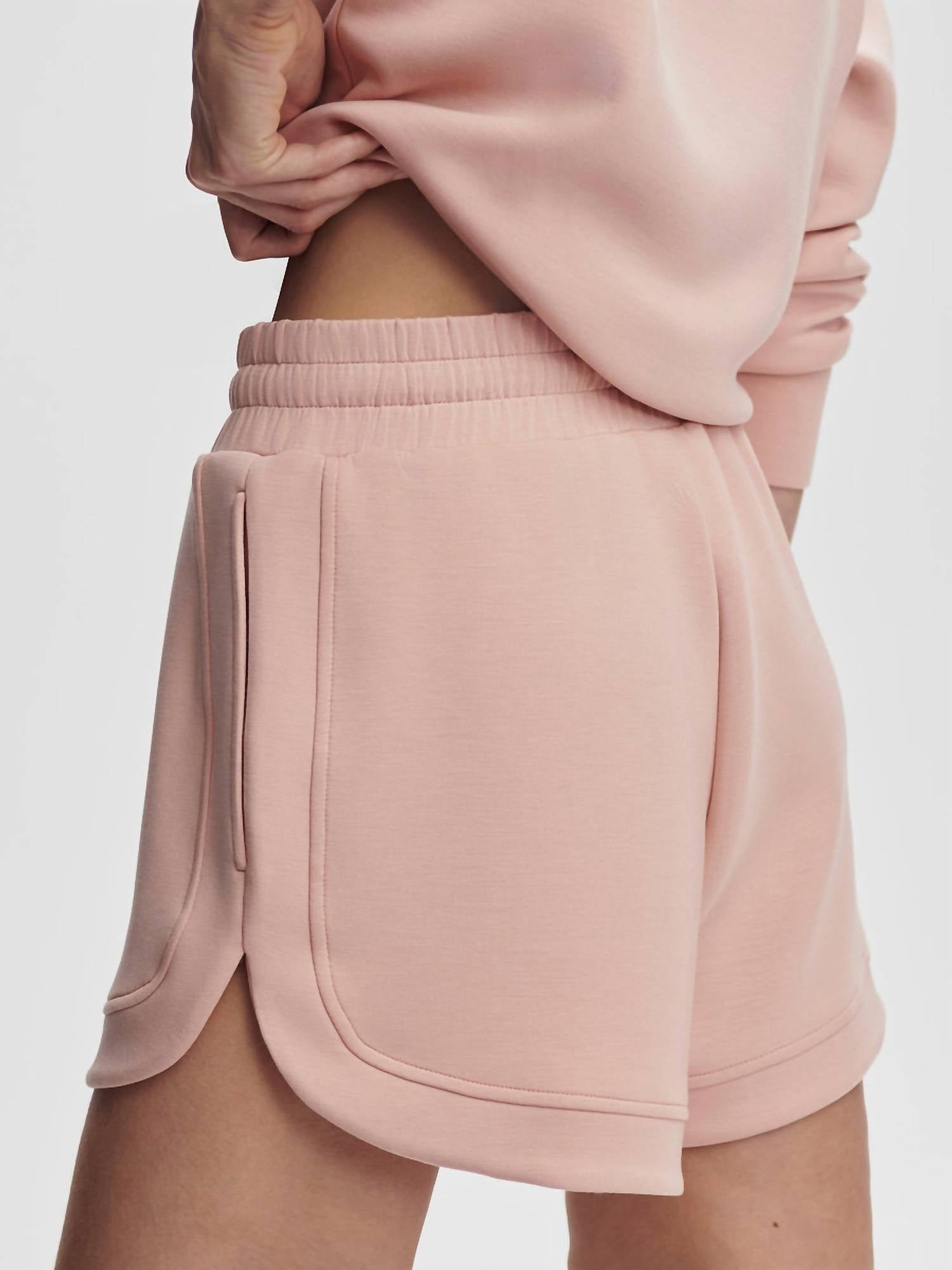 Fit to perfection, we love these high-waist shorts and you will too. Introducing the Ollie High Rise Short by VARLEY, a stylish addition to your summer wardrobe in a delicate Dusty Pink hue. These women's shorts boast a high-rise elastic waist, shaped hem, and convenient pockets, making them both fashionable and functional. Closure is a simple pull-on style, ensuring ease of wear. Care: Machine wash and line dry, perfect for maintaining their solid, streetwear-inspired look throughout your summer escapades.