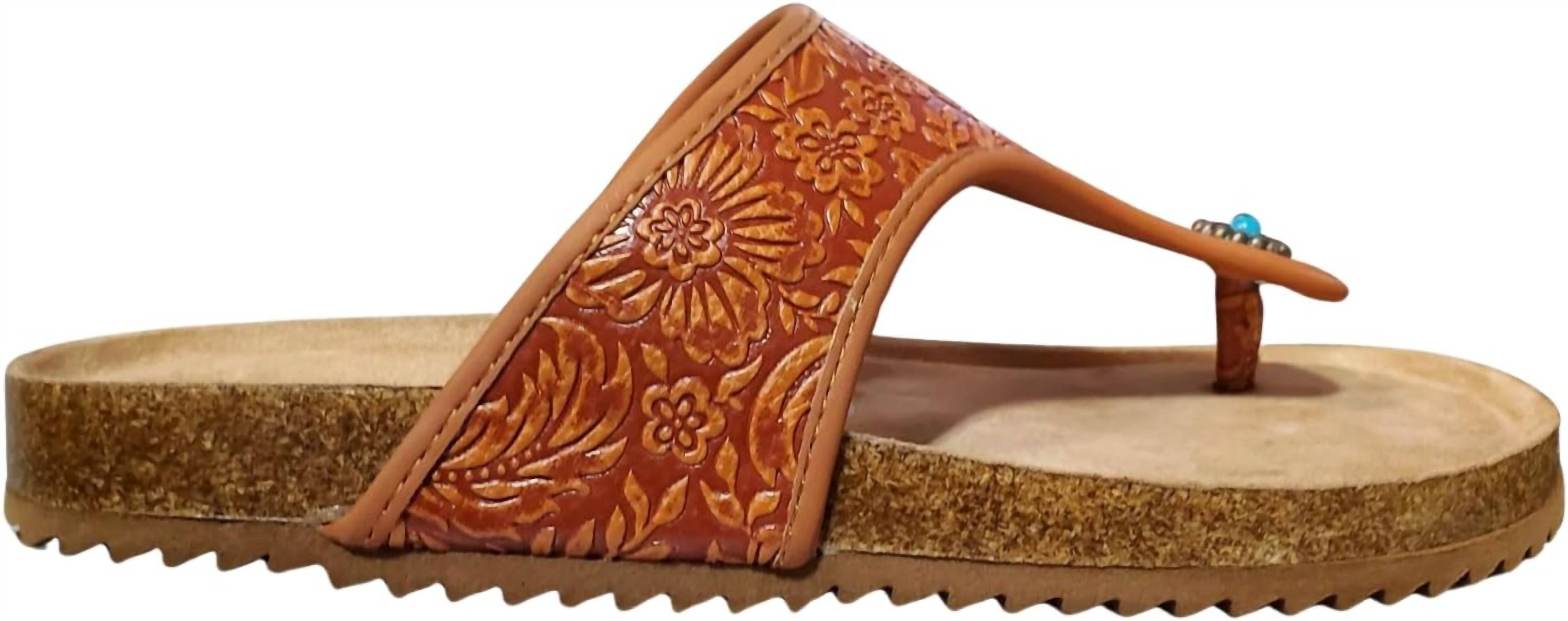 Step into summer with style in the Women's Danni Sandal by Very G, designed in a striking rust faux leather with boho chic flair. The open toe and flat heel make it a comfortable choice for sunny vacations, while the contoured footbed ensures a secure fit. Crafted with man-made materials, this medium shoe width sandal effortlessly combines a casual vibe with comfort. Perfect for your western wardrobe, it features a unique faux turquoise stone concho, embodying the season's hottest trends.