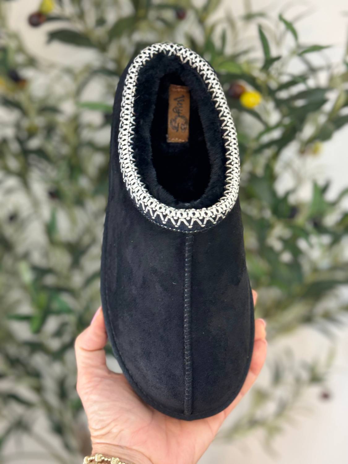 These slippers are crafted from durable faux suede, boasting a delightful round toe and flat heel style for everyday wear. With a luxurious fuzzy lining, we recommend sizing up at least a half size.