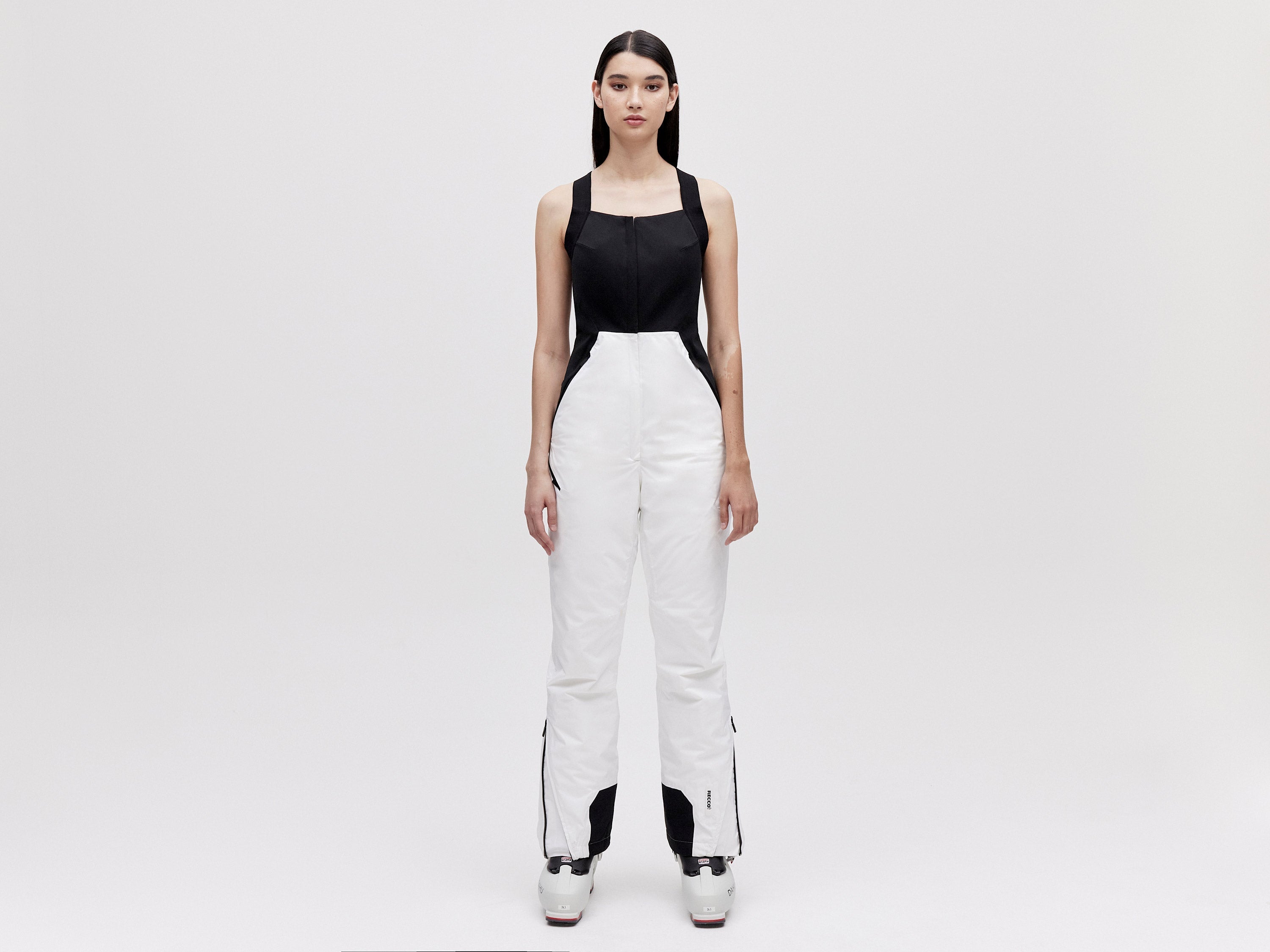 Our Wadded Salopette is crafted from a technical lightweight shell fabric. It's shaped to a flattering silhouette featuring contouring seams and a four-way stretch waterproof fleece bodice. The knee and boot area offers a more generous fit for a range of movement and all-day comfort. Pair it with our Cropped Down Jacket and you have the perfect outfit to keep you warm and dry for a full day on the slopes.