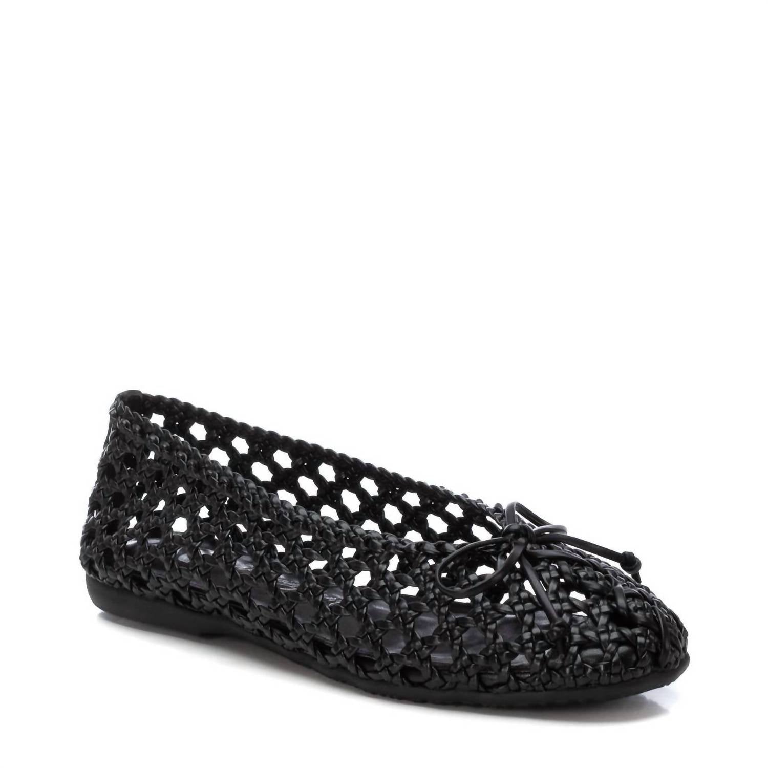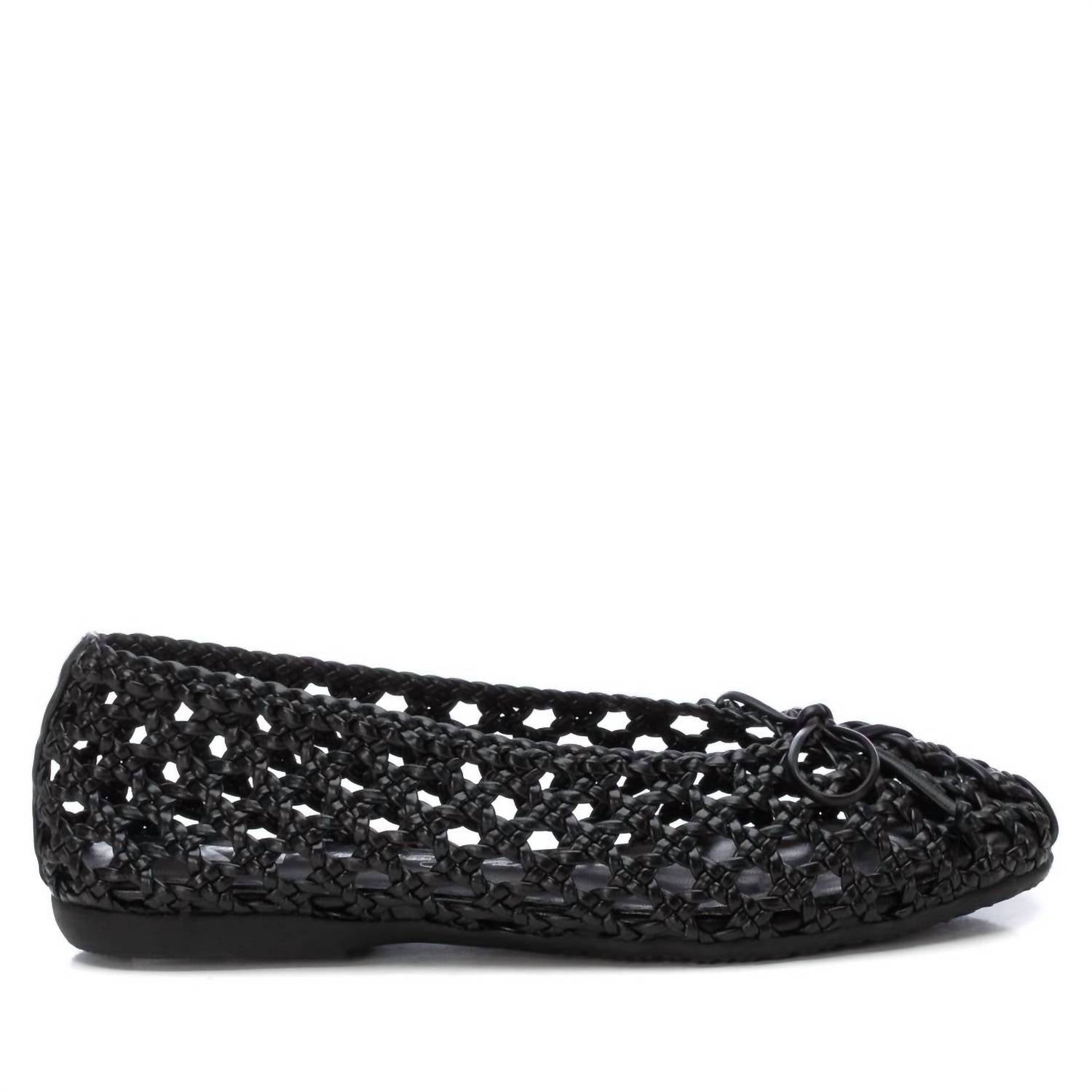 Elevate your ensemble with Xti's Women's Ballerinas in striking black, made to complement any occasion. Crafted from textile material with a chic metallic effect, these ballerinas feature a round toe design and a tone-on-tone bow detail for added flair. With a flat, non-slip sole, they ensure comfort throughout your day. Ideal for pairing with any outfit, these flats seamlessly blend style and practicality.