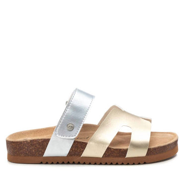 The Women's Casual Sandals by Xti are an elegant addition to any wardrobe, boasting a chic gold color. Designed with a round toe and flat heel, these sandals are ideal for ensuring all-day comfort without sacrificing style. Perfect for any occasion, whether at work or a night out with friends. This trendy pair is a must-have for anyone seeking a fashionable upgrade to their ensemble.