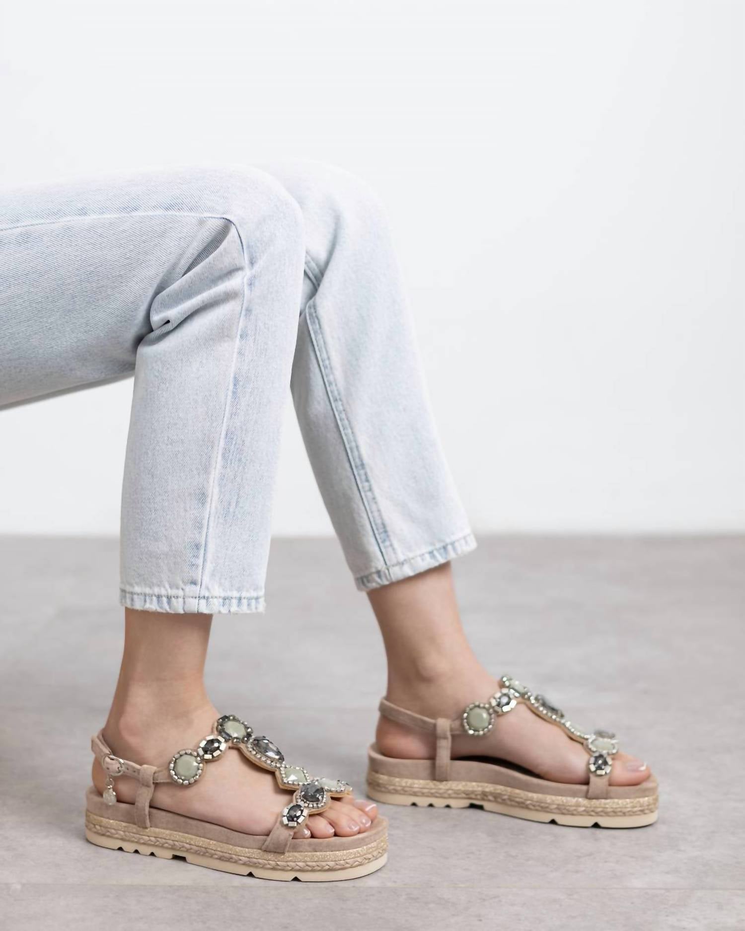 Flowy dresses, cropped pants, and even jumpsuits... this sandal works with them all! Elevate your wardrobe with Xti's Women's Sandals, a chic choice in a sophisticated taupe hue. Crafted from luxurious suede, these sandals feature a round toe and a low flat heel for added comfort. Ideal for a variety of occasions, they seamlessly balance style with ease of wear. Perfect for the modern woman, these sandals promise to complement any outfit effortlessly.