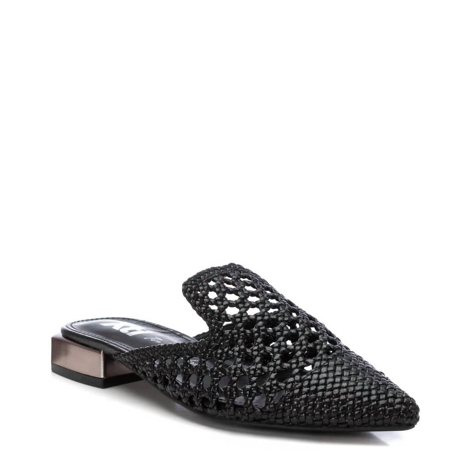 Elevate your wardrobe with the Women's Fashionable Mules by Xti, a chic choice for any event. Crafted in a versatile black color, these flats are designed for women who appreciate style without sacrificing comfort. Featuring a pointed toe and a flat heel, they add a trendy edge to any outfit. Perfect for both professional and social settings, these mules are a must-have accessory.