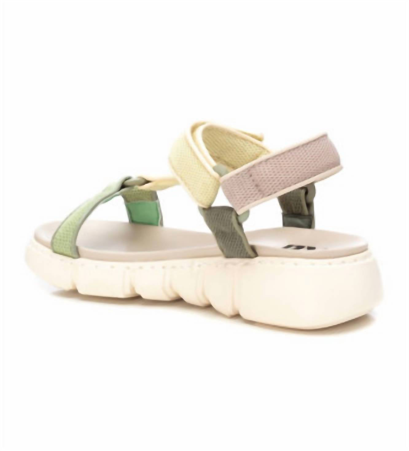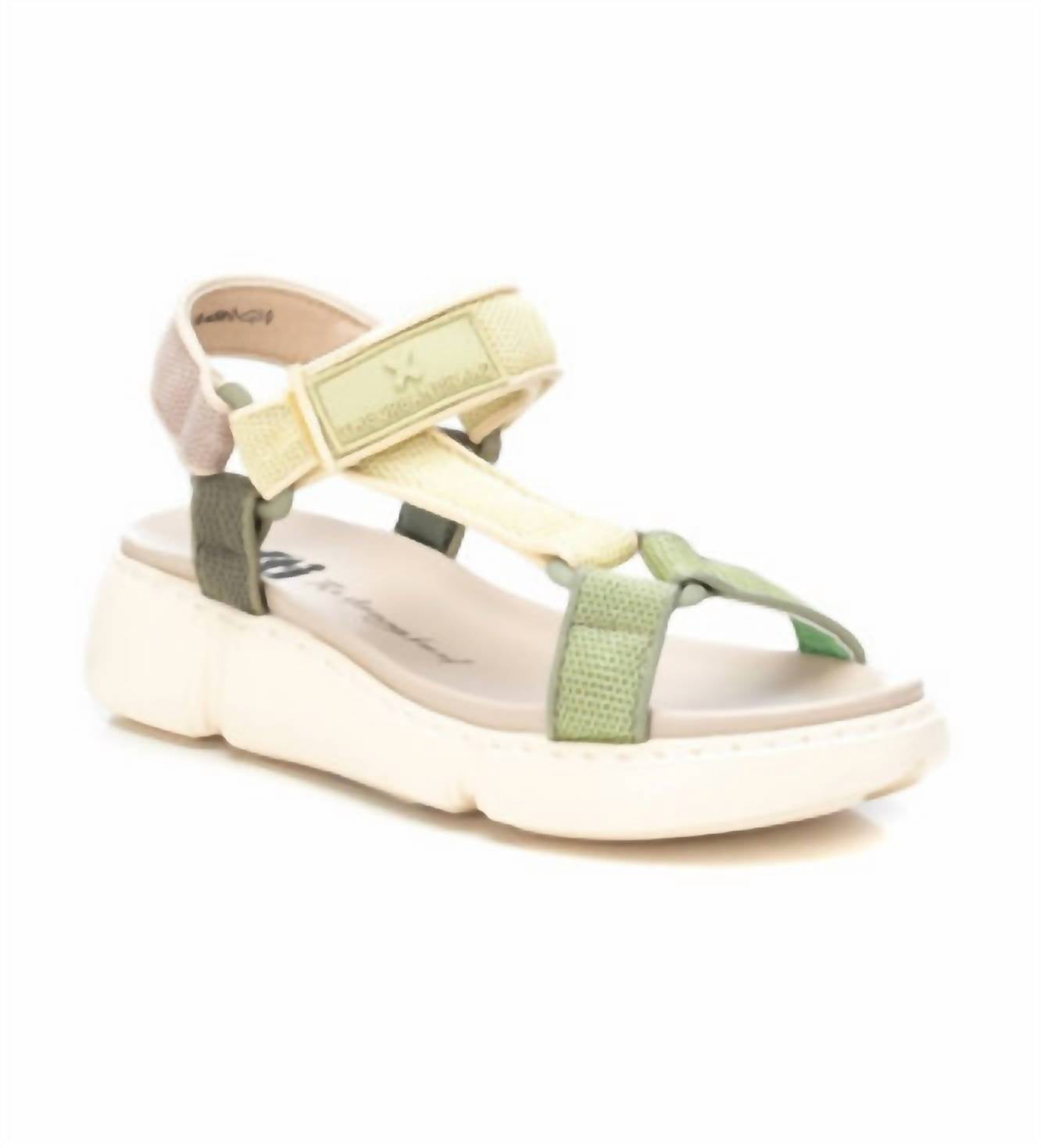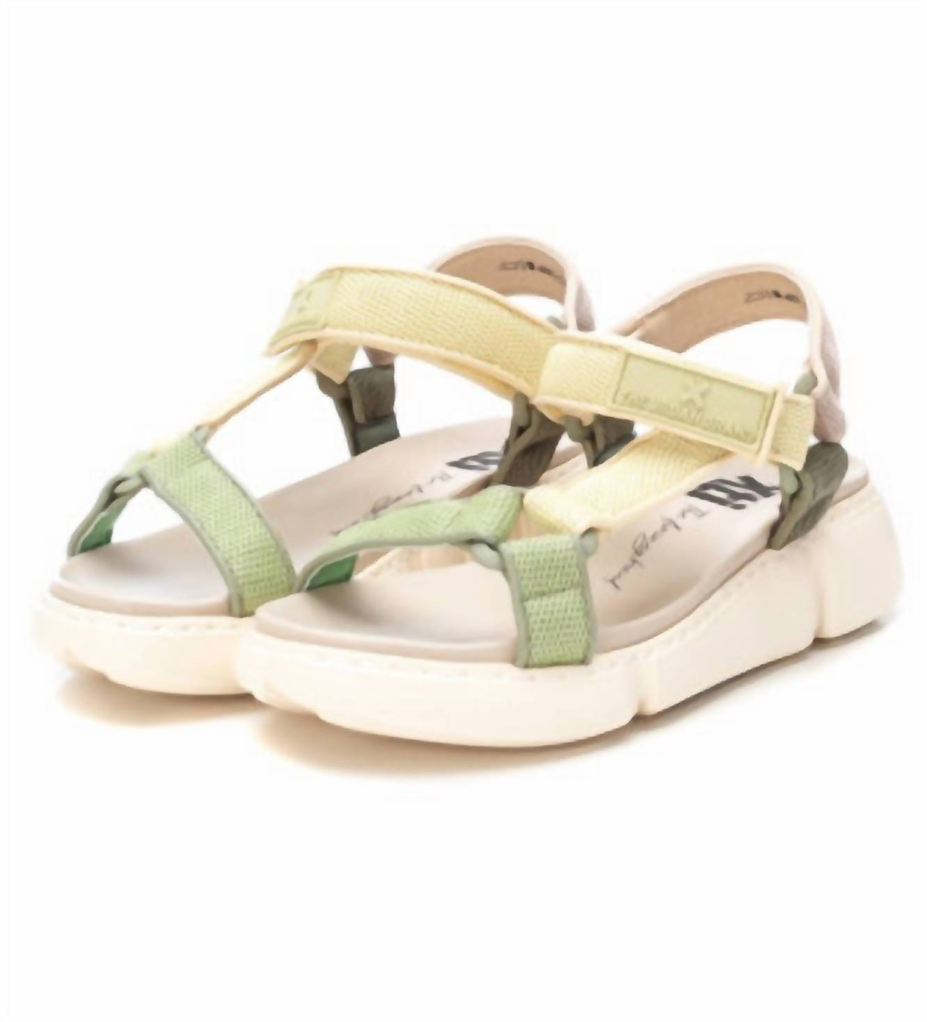 This Flat Sandal [142917] features high-quality textile material with adherent straps for a secure fit and a round toe design for classic charm. The 1.18-inch low wedge heel offers a subtle lift, and the non-slip rubber sole ensures stability. PETA-certified vegan.