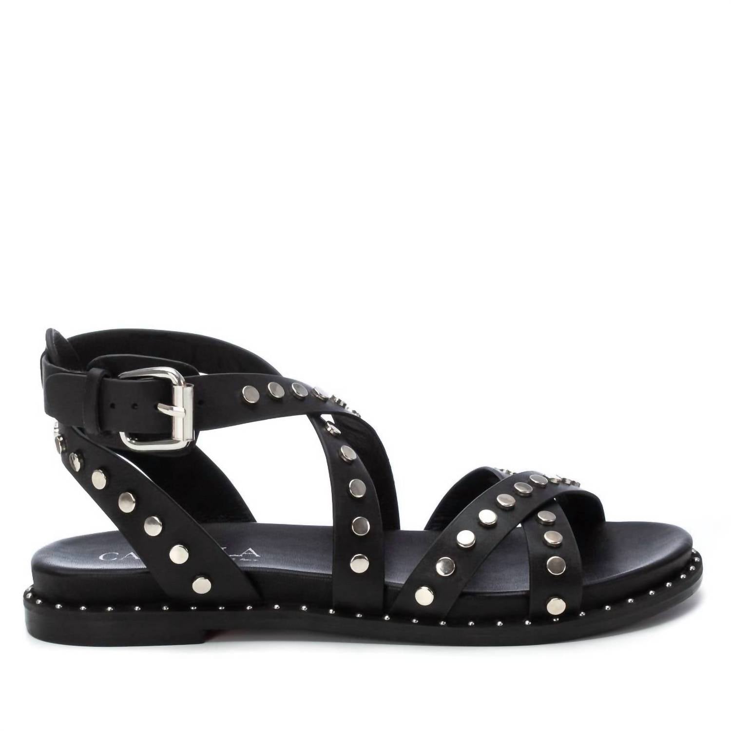 Flowy dresses, cropped pants, and even jumpsuits... this sandal works with them all! Step into effortless style with the Women's Flat Sandals by Xti, part of the Carmela Genuine Leather Collection. Crafted from high-quality leather, these black sandals feature a round toe and a flat heel for all-day comfort. Perfect for any occasion, they're an ideal choice for the modern woman looking to add a chic touch to her ensemble. Whether at work or a casual outing, these sandals keep you looking stylish and comfortable.