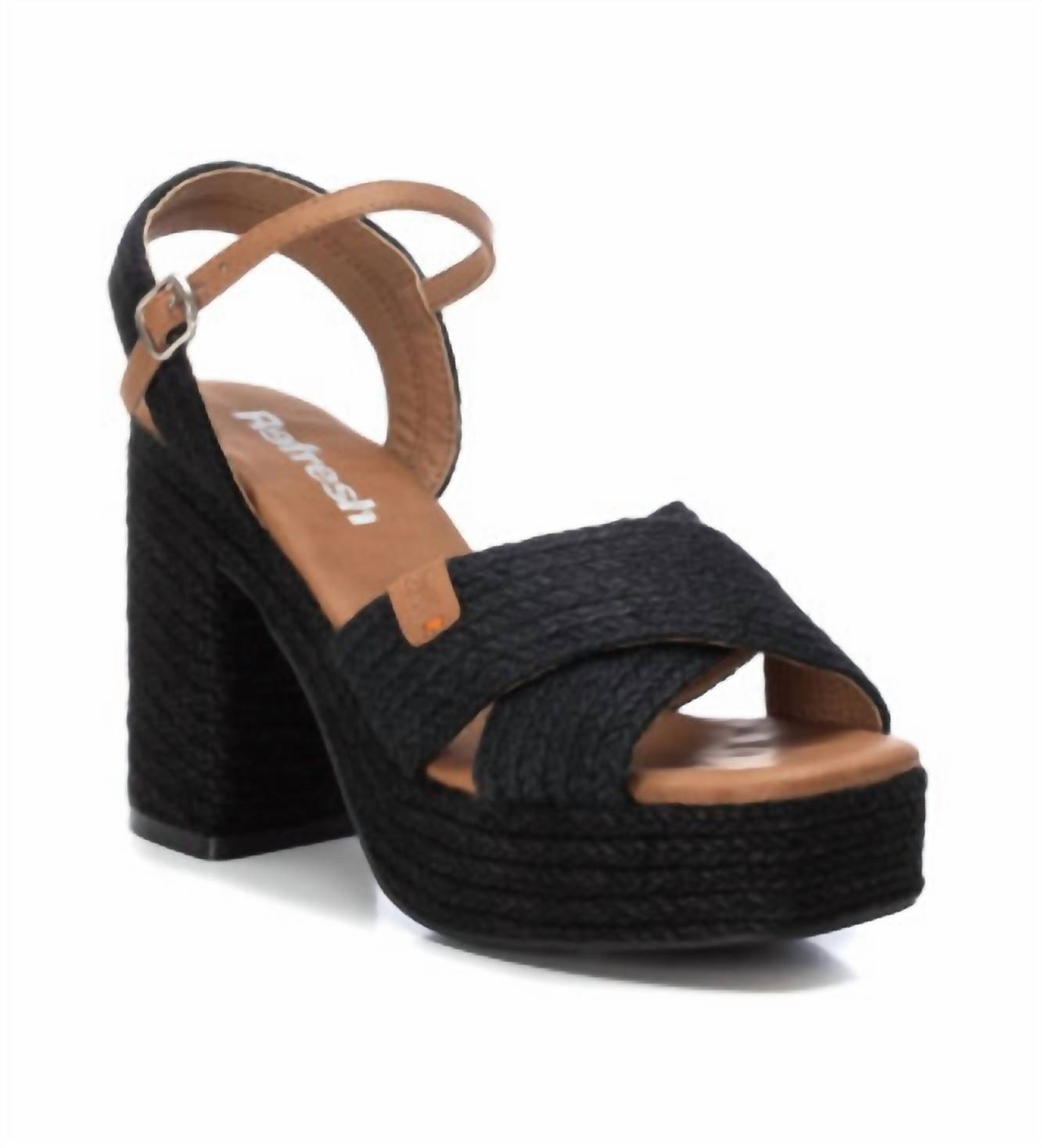 This sandal will take you from brunch to dinner and everything in between. This Heeled Sandal features premium raffia with a chic double shovel design and secure ankle strap with buckle fastening. The 9 cm block heel and front platform ensure comfort and walkability, while the non-slip sole provides traction. PETA-certified vegan, perfect for any occasion.