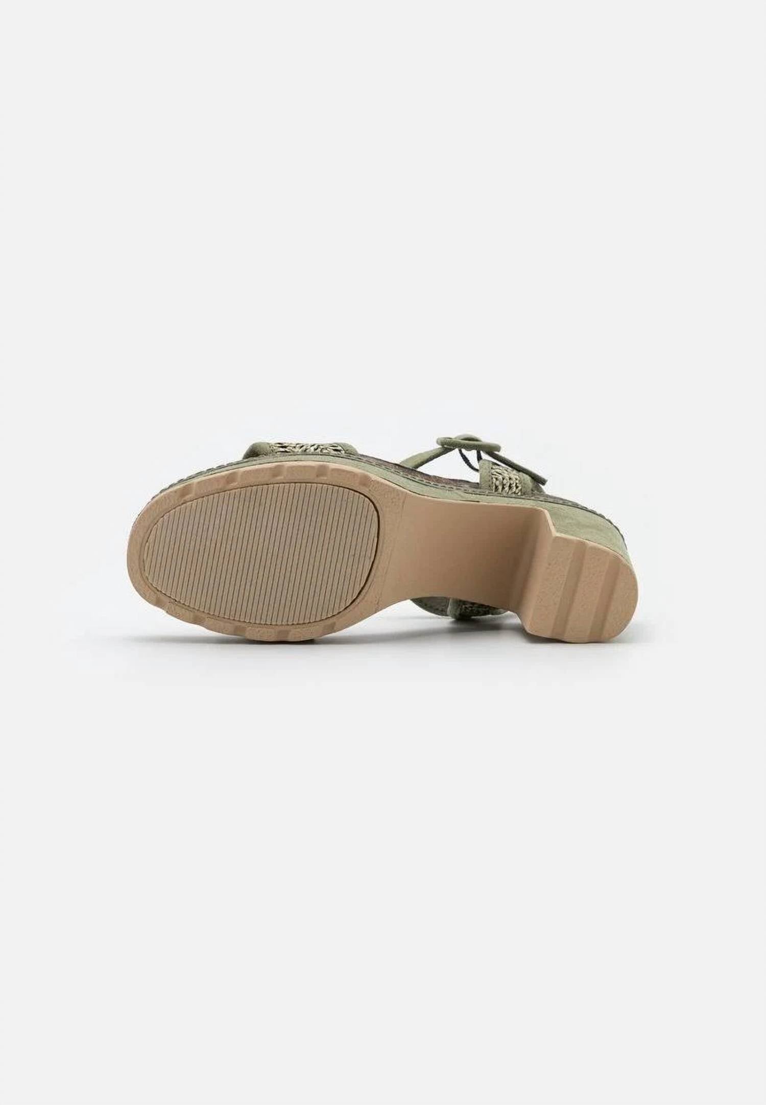 Flowy dresses, cropped pants, and even jumpsuits... this sandal works with them all!Women's Sandals by Xti. These 3.93 in high suede sandals are the perfect blend of casual and comfort. Trend design that goes well with every outfit. Jute detail on strap. Buckle closure. Durable non-slip rubber sole.
