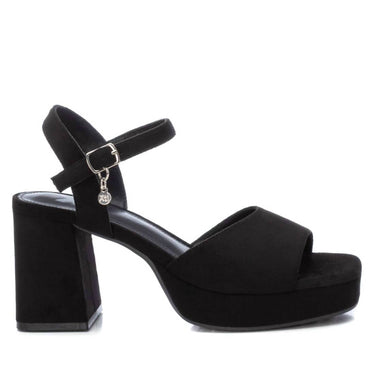 Women's Black Suede Sandals by Xti. Take your style to the next level with Xti Shoes! These 2.76 in high sandals are the perfect blend of casual and comfort. Strap with metallic buckle closure. Durable non-slip rubber sole.