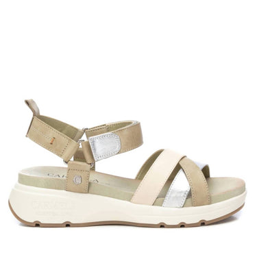 Elevate your summer wardrobe with the Women's Leather Sandals by Xti in khaki, a perfect blend of style and comfort. Featuring a wedge heel and round toe, these sandals are crafted from high-quality leather for durability and a luxurious feel. The metallic finish intertwined straps add a touch of sophistication, complemented by a convenient Velcro fastening and rear puller. Designed for the modern woman, these sandals from the Carmela Collection ensure you step out in style this season.