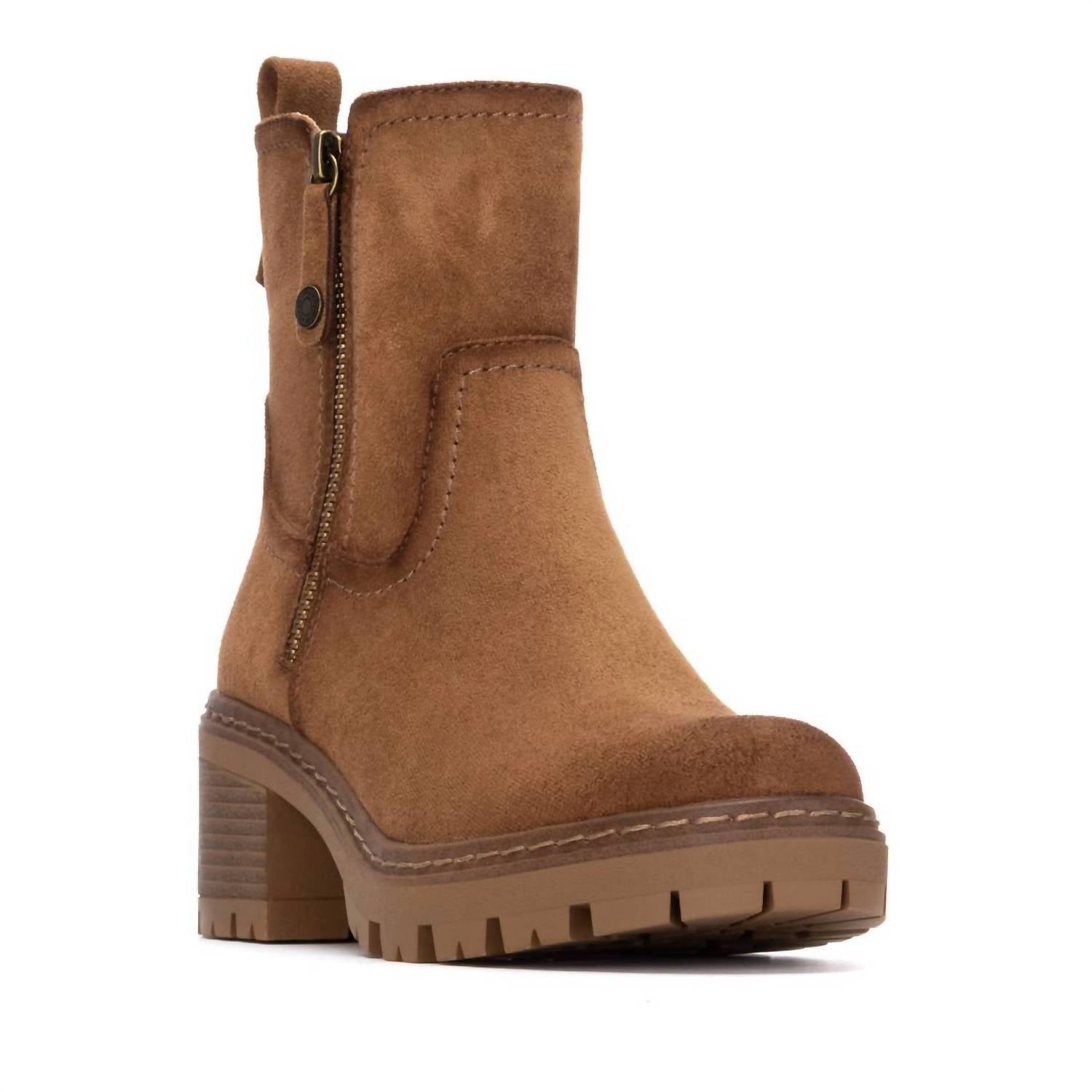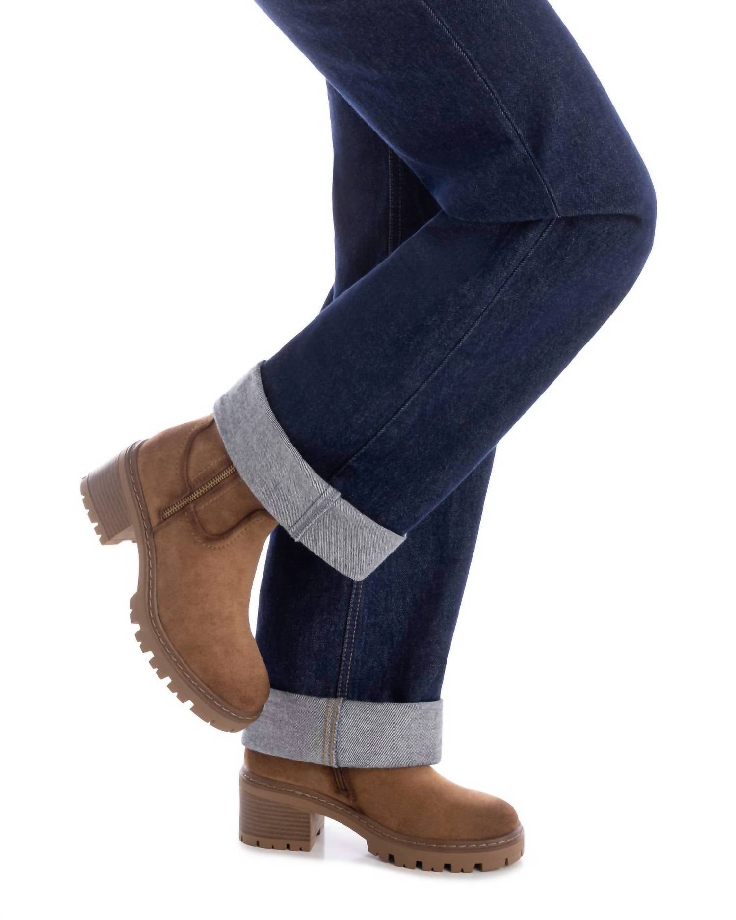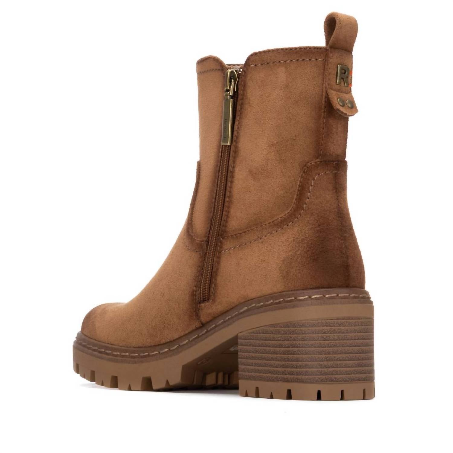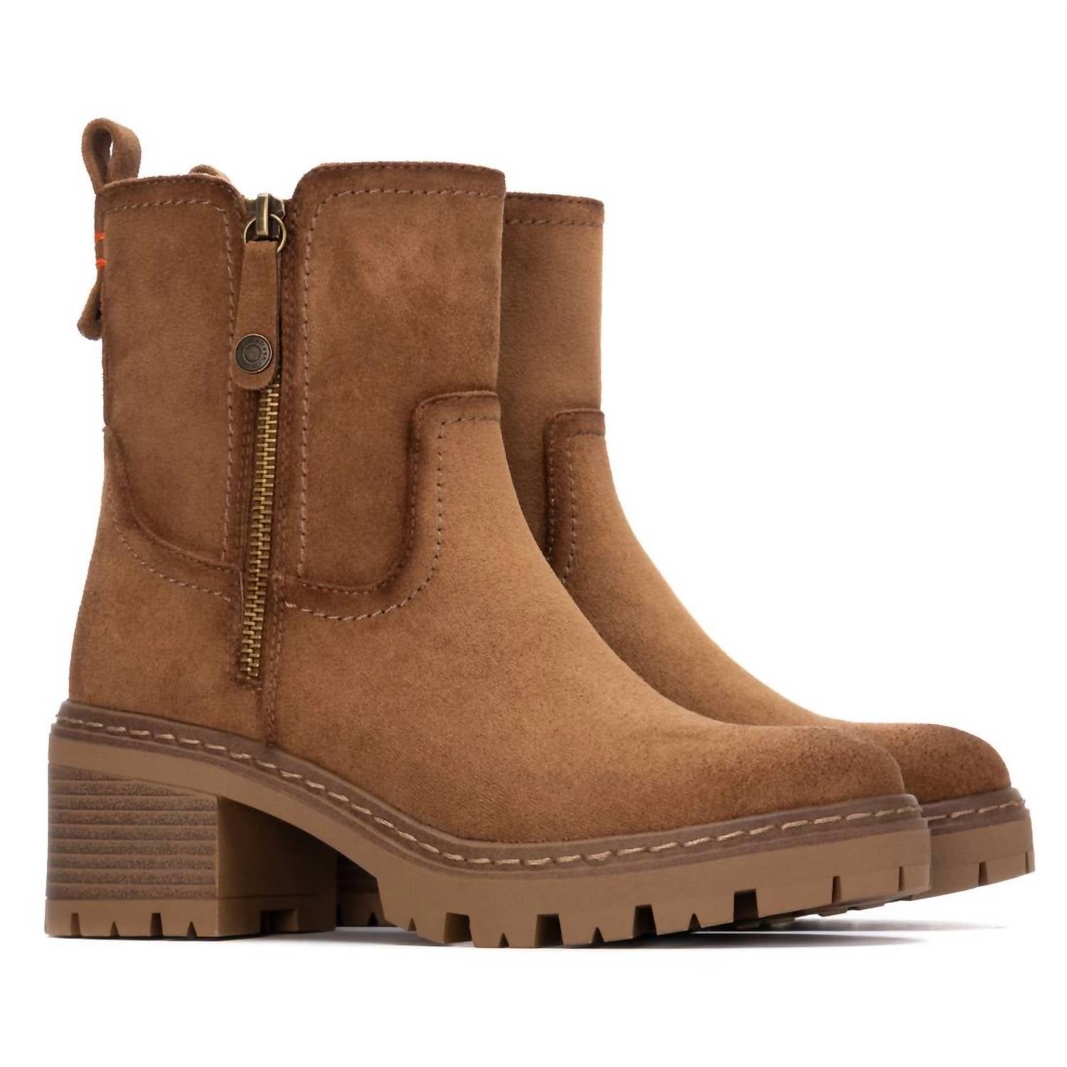 Introducing the Women's Refresh 173023 Booties by Xti, a perfect choice for sophisticated style and comfort in taupe. These female adult ankle booties are crafted with premium leather, making them an ideal pick for a chic Western trend look. Designed with a round toe and block heel, these booties are perfect for Thanksgiving dinner parties and casual summer outings alike. Embrace quality and elegance with Xti's expertly crafted shoes.