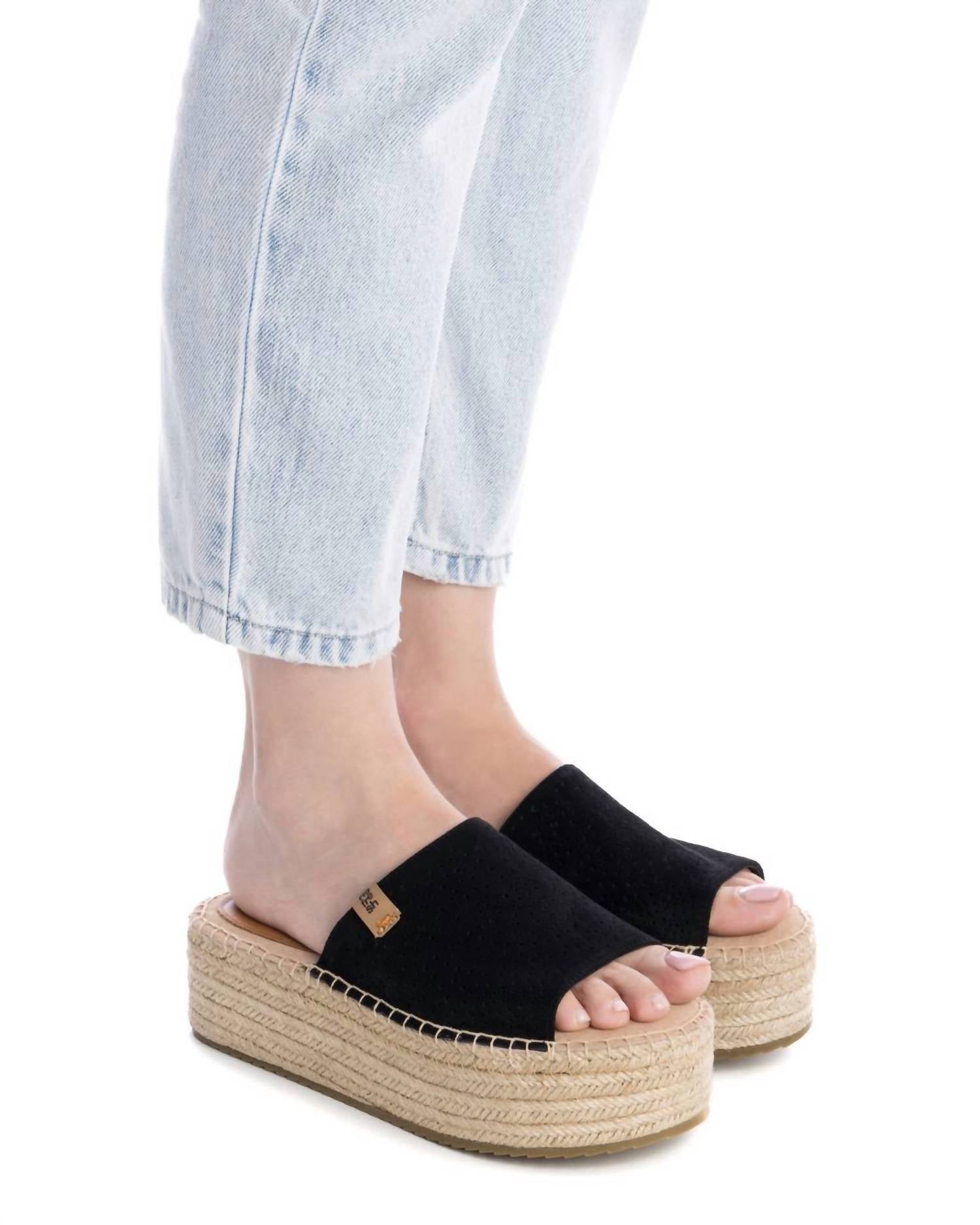 Step into sophistication with the Women's Refresh Platform Wedge Sandals by Xti, the ideal choice for versatile style. These trendy black sandals feature an open toe design paired with a chic platform heel, perfect for elevating any look. Designed for women and made for any occasion, they effortlessly blend comfort with fashion. Whether heading to work or meeting friends, these sandals promise to keep you stylish and comfortable.