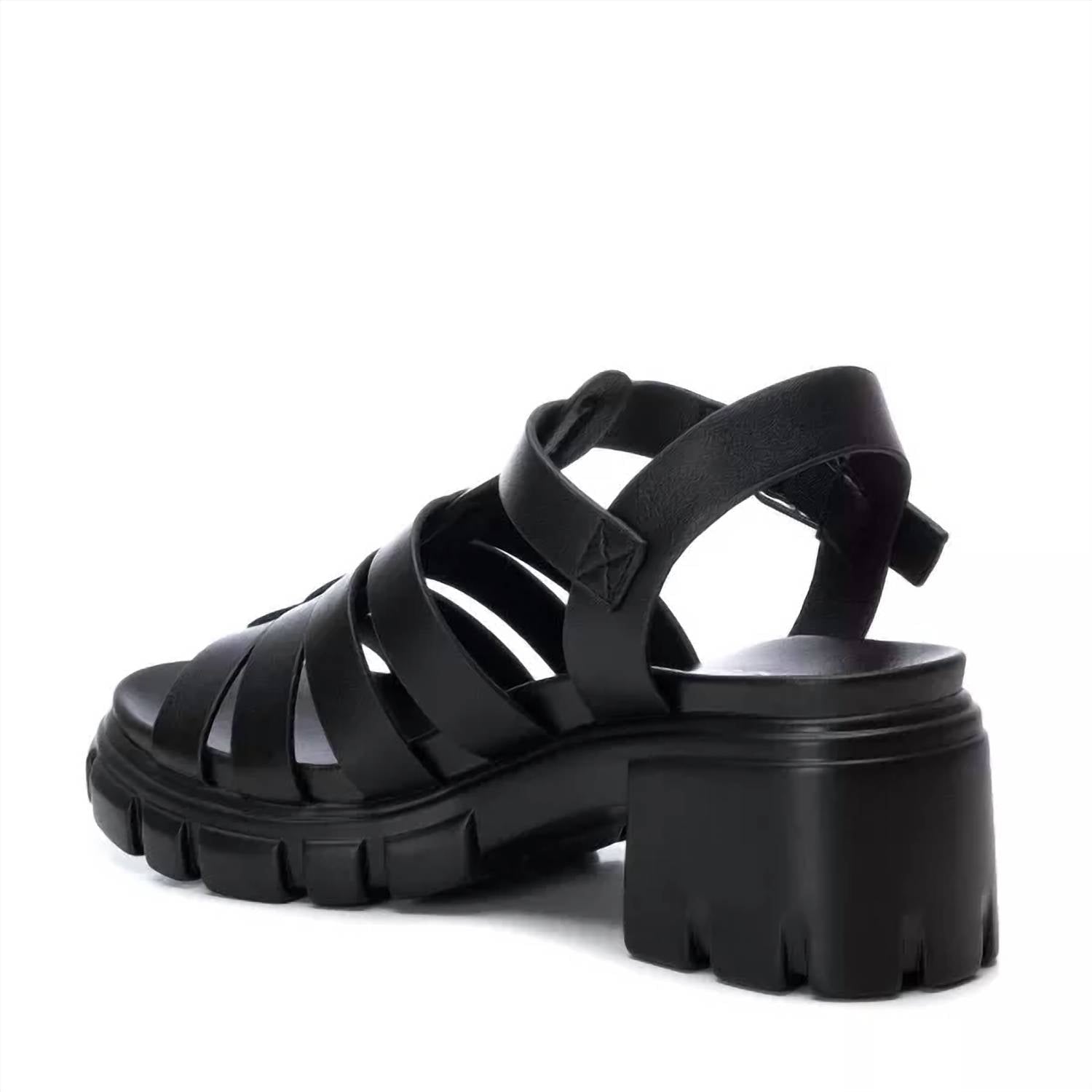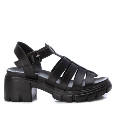 Classicly cute and all-day-wearable. We love this sandal. Made in material that imitates leather. Sandal type crab with buckle. Wide heel of 7 cm with front platform to tone. Non-slip sole.