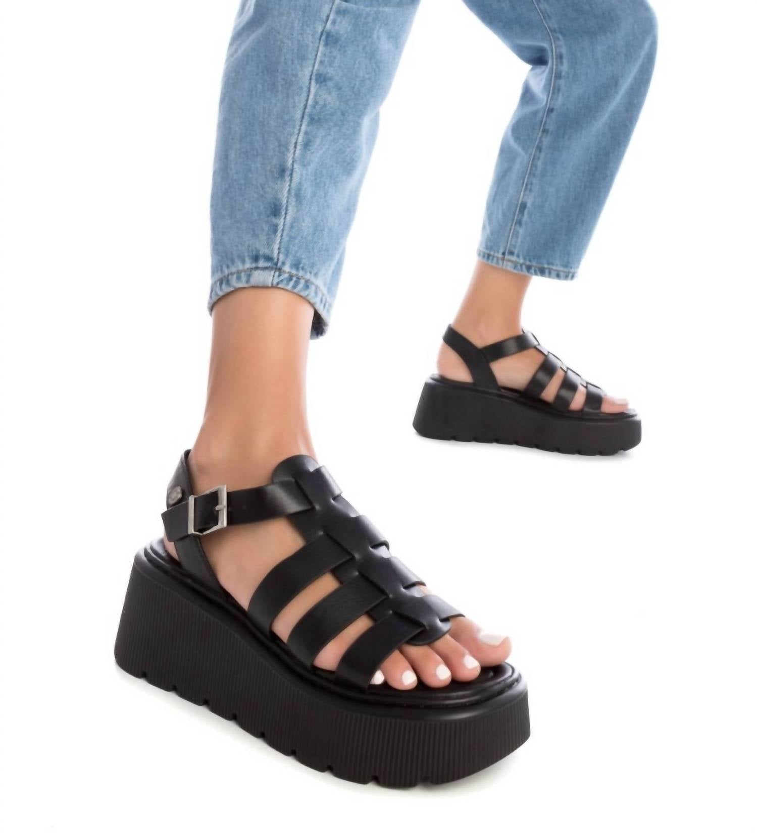 This sandal will take you from brunch to dinner and everything in between. This Wedge Sandal features a chic crab-style design, crafted from premium leather-like material. It includes an adjustable buckle fastening for a secure fit and a comfortable 2.36-inch mid-height wedge heel. This sandals offer a non-slip sole for added stability.