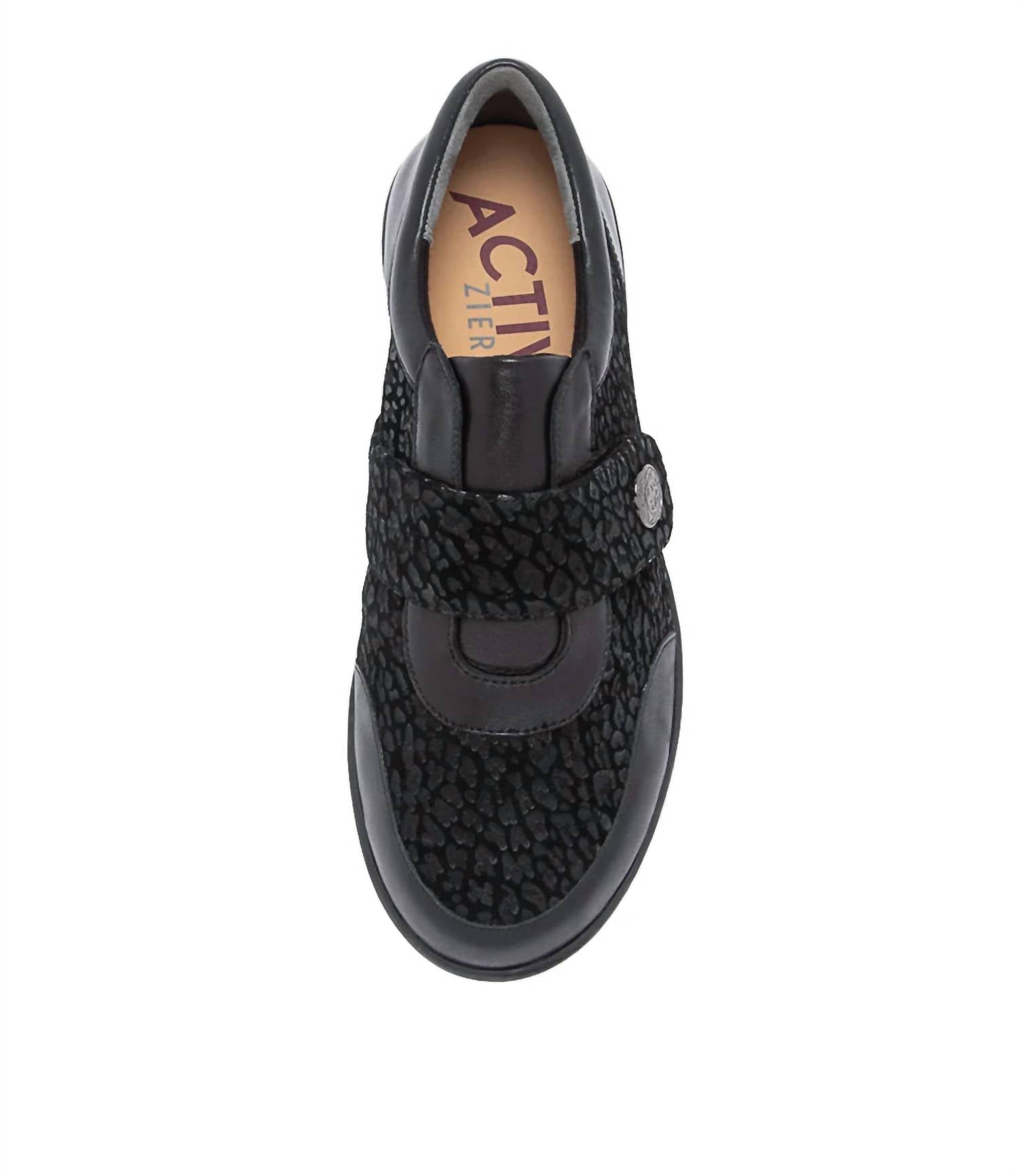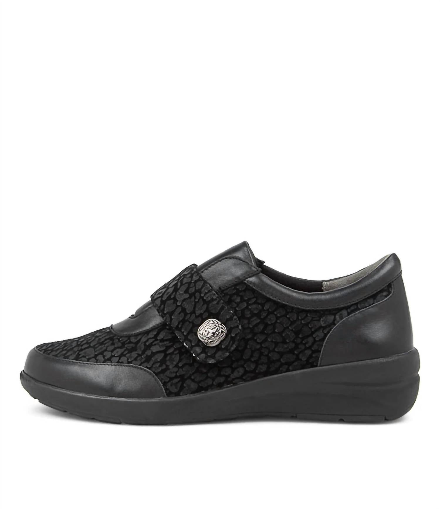 When fashion and function come together seamlessly. Slip into effortless elegance with the Ziera Women's Nicky Shoes, featuring a sleek Black Leopard Multi design perfect for spring occasions. These sneakers combine casual style with maximum comfort, offering shock-absorbing gel cushioning and a stabilizing design. Complete with a removable Active Comfort footbed and rubberised EVA sole, they deliver durability and support with every step. Fastened with velcro straps, these round-toe, flat-heeled sneakers in a medium width are ideal for quiet luxury at a dinner party or leisurely stroll.