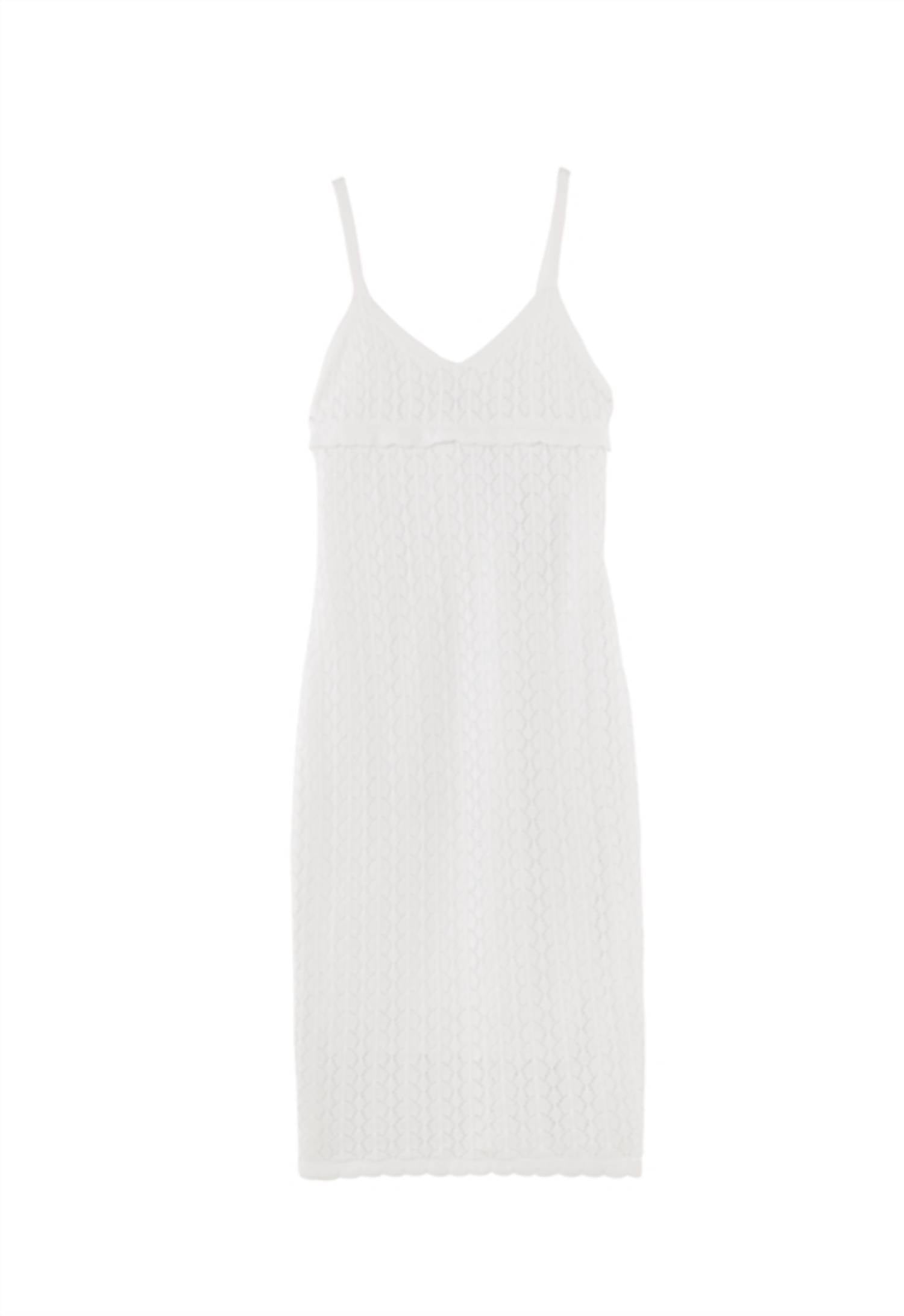 Features a V neckline, tank straps, ruffle insert below bust and hem, and is a fitted light-weight knit silhouette. This pull-on dress is lined.
