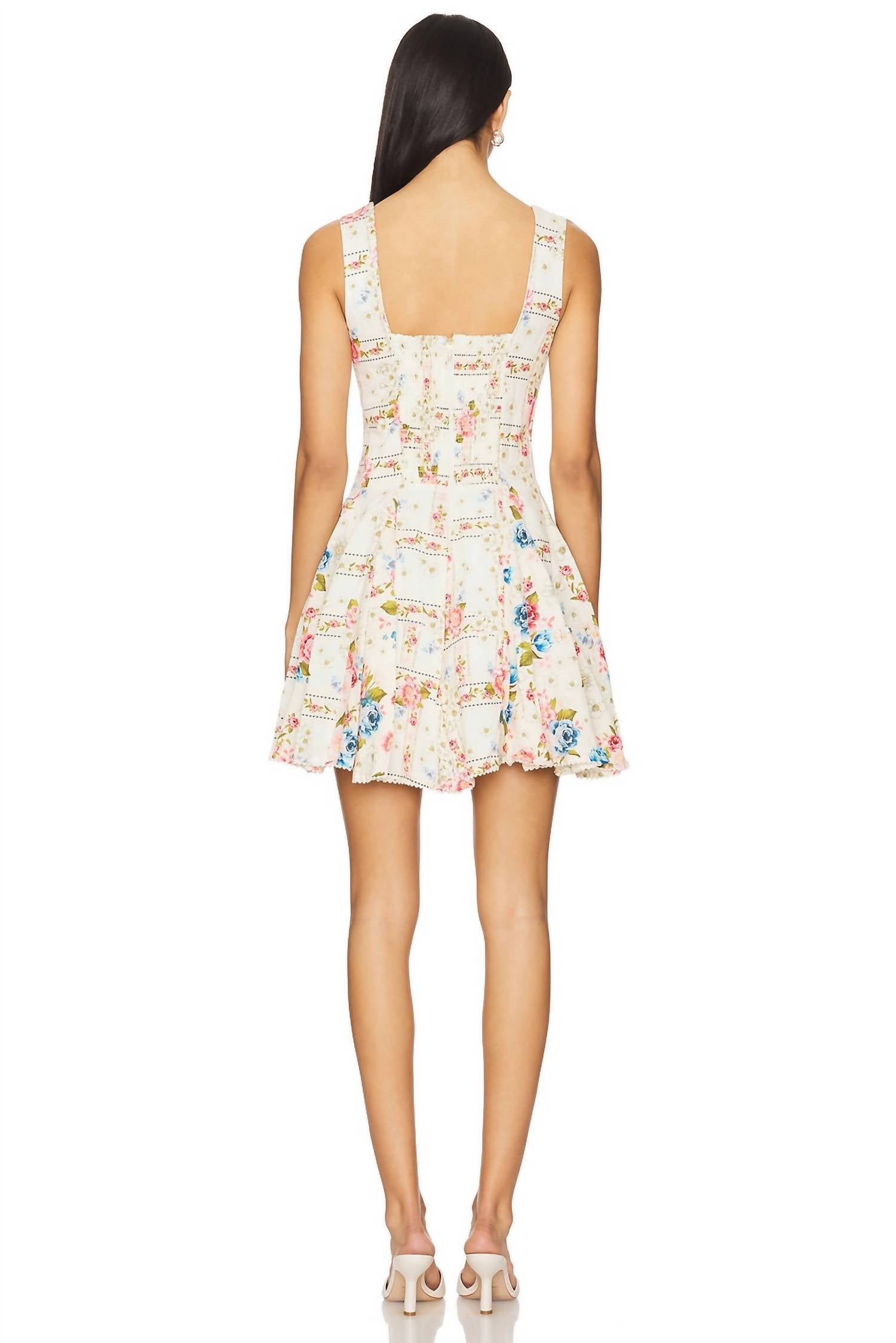 Step into summer with the Kristen Mini Dress by AGUA BENDITA, a chic fit and flare piece perfect for any vacation. This sleeveless design, crafted with 46% viscose, 31% cotton, and 23% linen, features a floral pattern that oozes 90s fashion nostalgia. With a 31.88-inch length, it includes a structured bodice, a scoop neckline, and a smocked back for a flattering fit, while the zip closure ensures easy wear. Care for this elegant dress by hand washing with gentle soap; avoid bleach, dryers, and ironing to maintain its exquisite details. Model is wearing a size S (5'9" height, 33" bust, 24" waist, 37" hips).