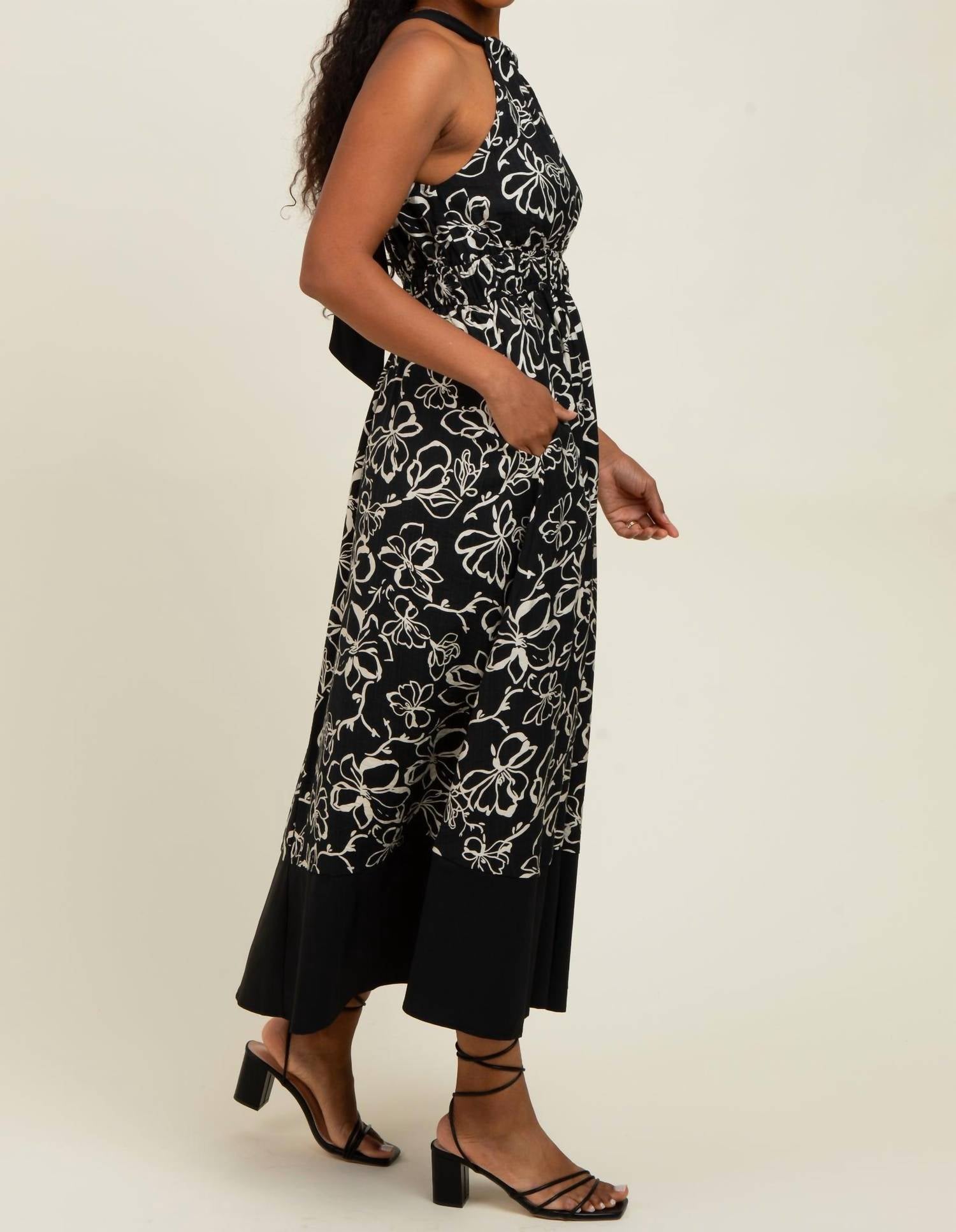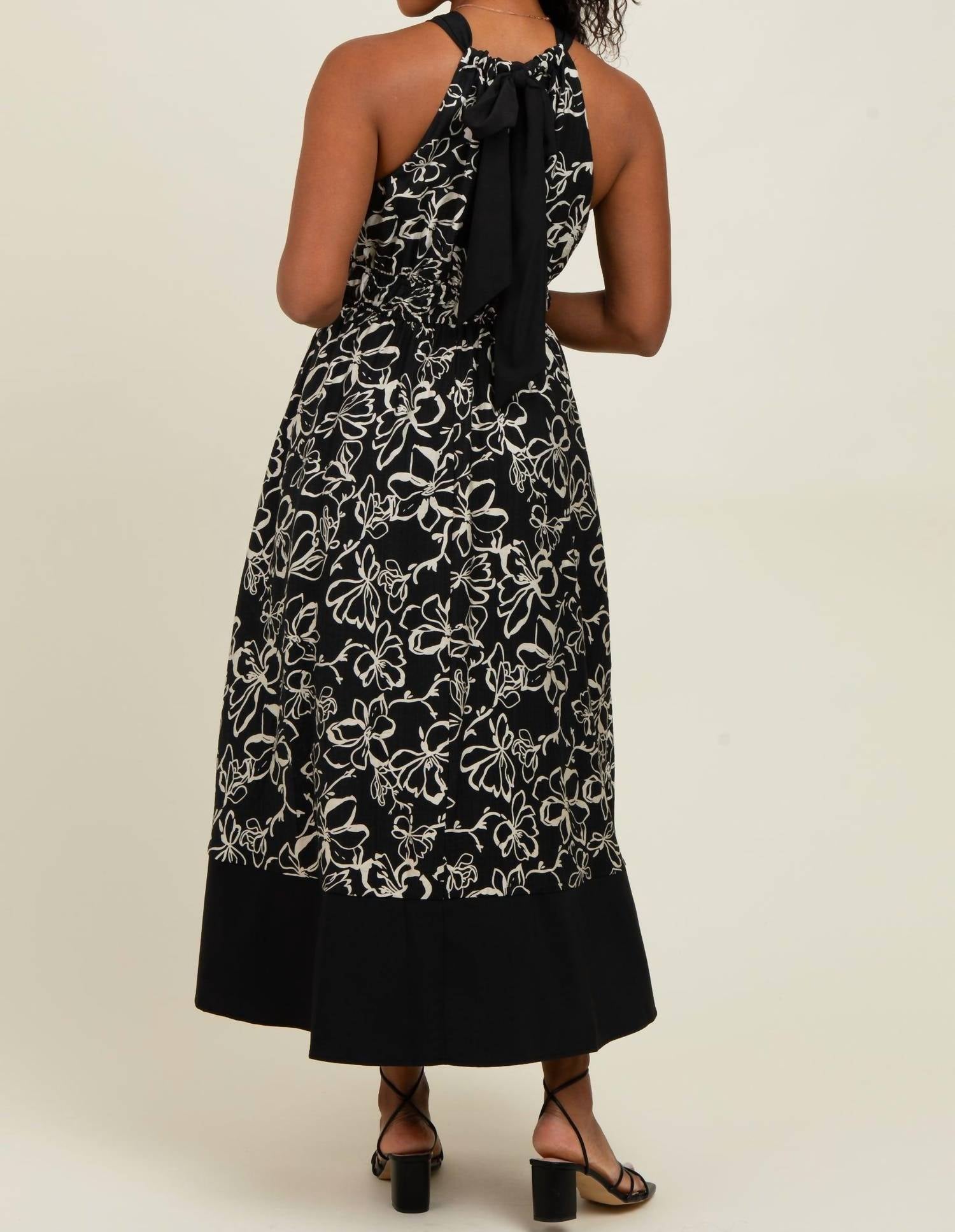 Style this maxi with your favorite statement necklace and sandals for the perfect look. Embrace boho chic elegance with the Entro Back Neck Tie Maxi Dress in a fit and flare silhouette. This sleeveless, halter-neck dress promises effortless charm with its patterned nylon blend, perfect for spring occasions. Its maxi length allows for graceful movement, while the tie closure at the back adds a playful touch. Composition: 80% Rayon, 20% Nylon. Origin: Imported. Care: Machine wash and line dry.