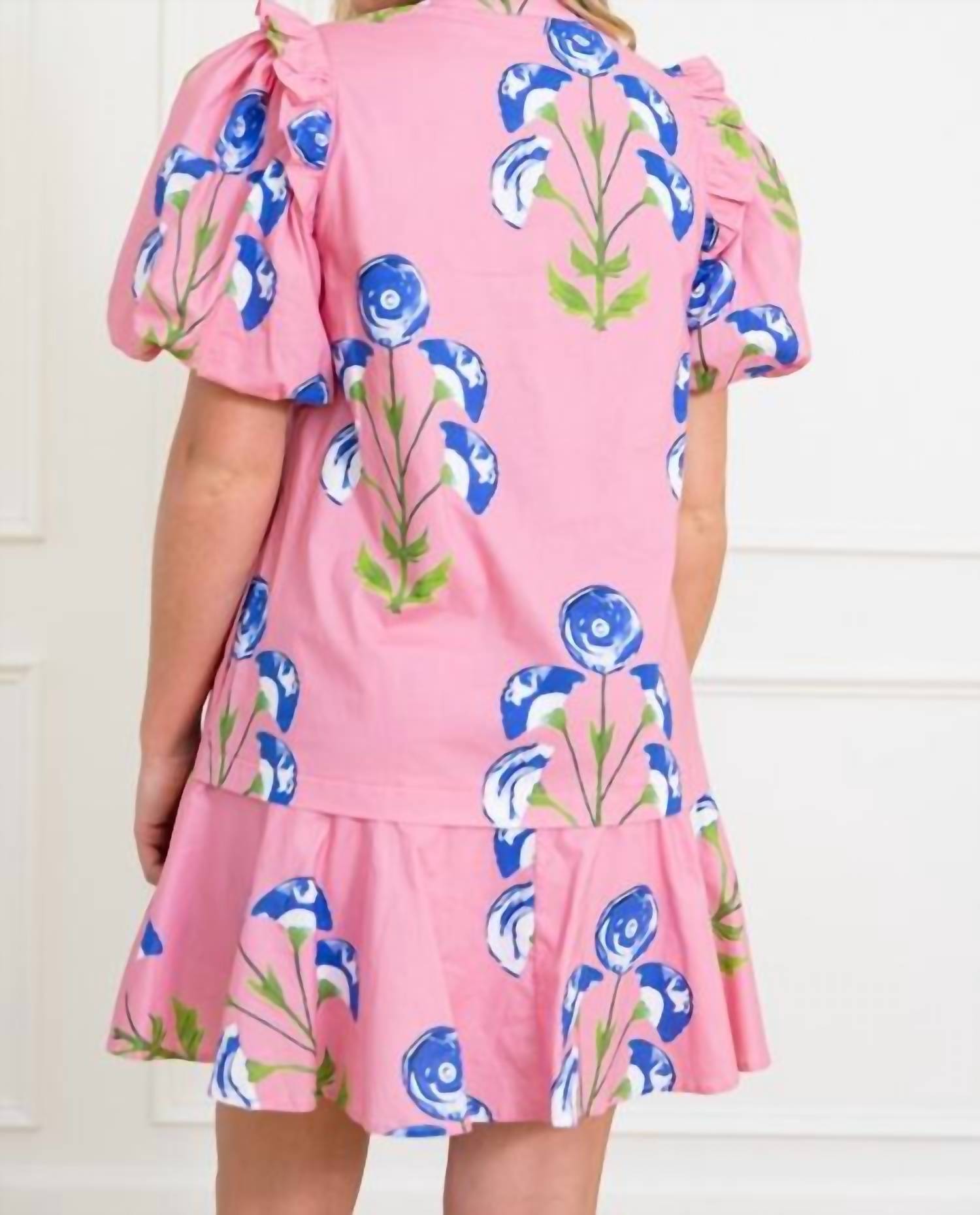 The Block Print Dress by Entro is a must-have for your vacation wardrobe, with its charming floral pattern and vibrant pink hue. It features a short sleeve design and a flattering A-line silhouette, finished with a stylish V-neckline. Composed of 100% cotton, it offers comfort and breathability during the spring season. Designed with a convenient pull-on closure and practical pockets, it combines style with everyday functionality.