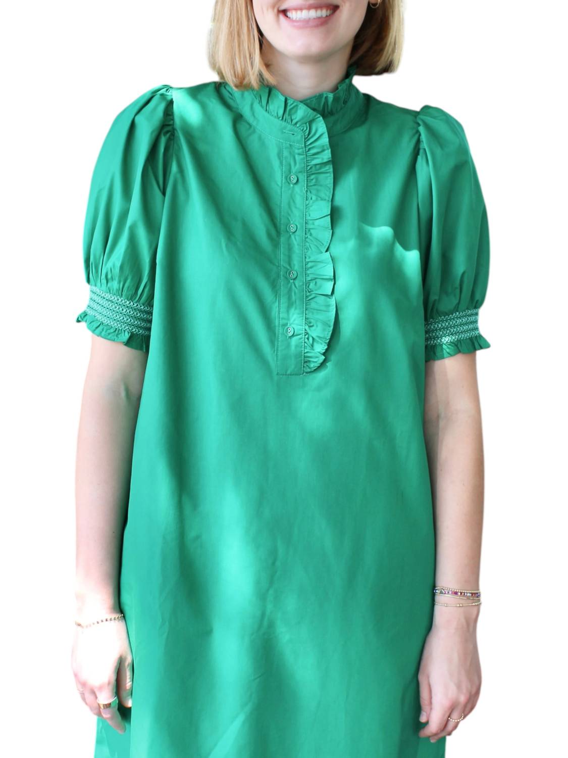 Introducing the Day Midi Dress by Entro, a boho chic piece perfect for expressing your vibrant personality. This shift dress features short puff sleeves and a crewneck, made from a textured blend of 80% Polyester and 20% Cotton, with a 100% Polyester lining. Seamlessly transition from sunny afternoons to breezy evenings with its playful design, accented by charming ruffle details. The dress is secured with a button closure; for best care, hand wash and line dry.