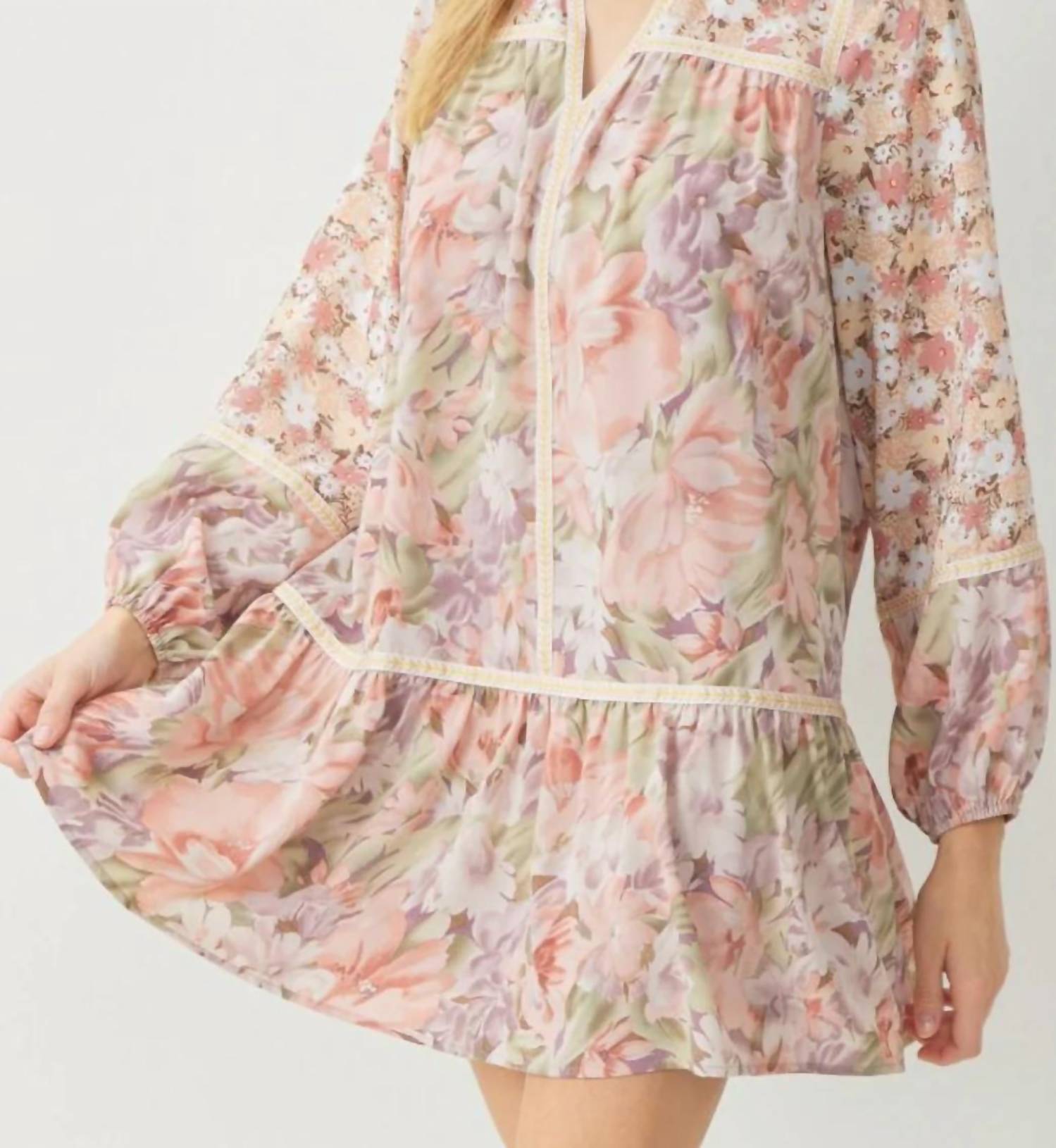 The Floral Drop Waist Dress by Entro is a delightful addition to your wardrobe, perfect for vacation getaways. It features a chic v-neckline and long sleeves, adorned with a mixed floral print and intricate trim details throughout. Crafted from 100% polyester, this lightweight woven mini dress ensures comfort and style, with a convenient pull-on closure. For best care, hand wash and line dry.