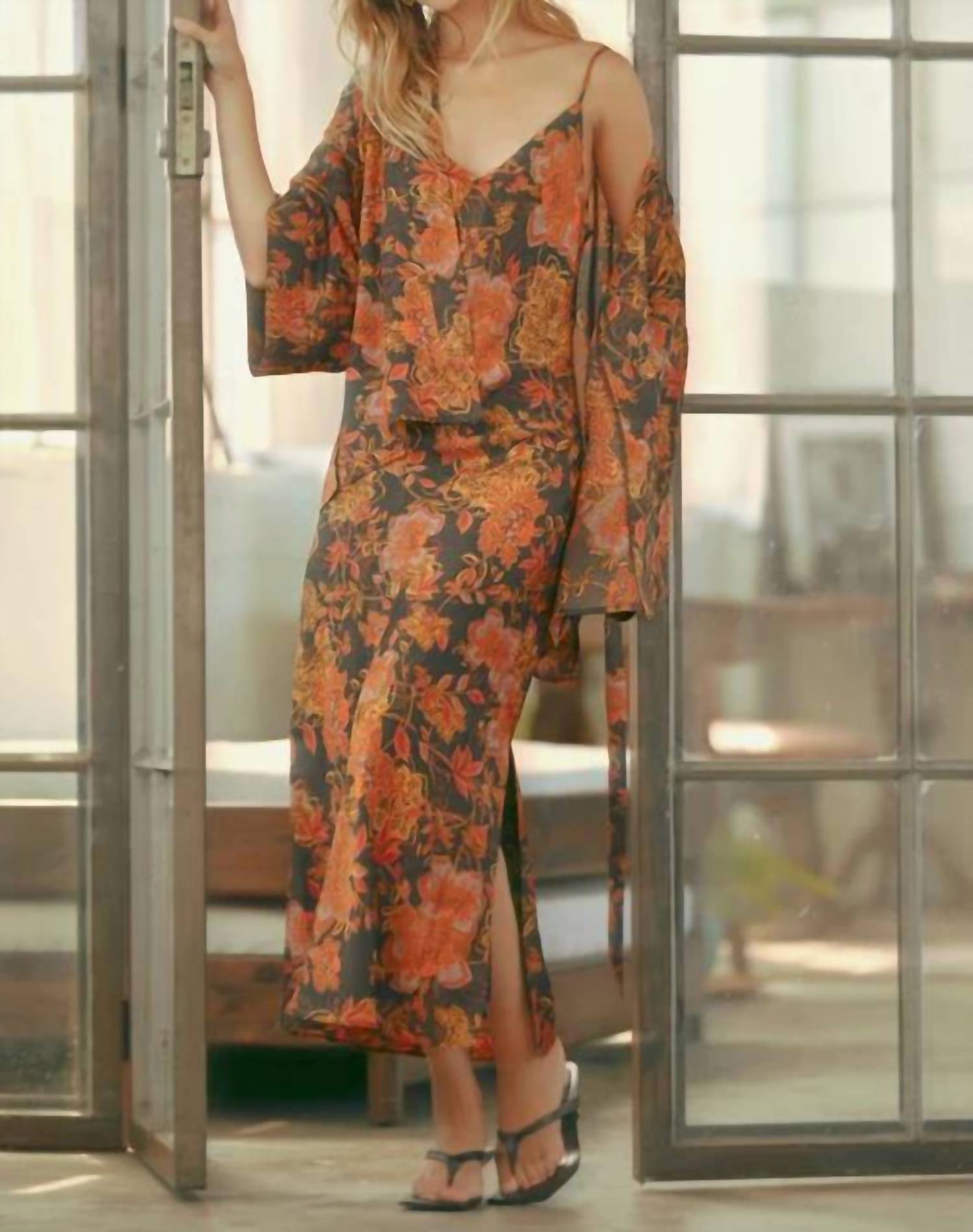 Introducing the Floral Midi Dress by Entro, a stunning choice for your summer vacation wardrobe. This slip-style dress in an elegant black floral pattern features delicate spaghetti straps and a flattering V-neckline. Made with luxurious satin that falls to a midi length, it boasts a convenient side zipper for easy wear. Care instructions recommend hand washing and line drying to maintain its impeccable quality.