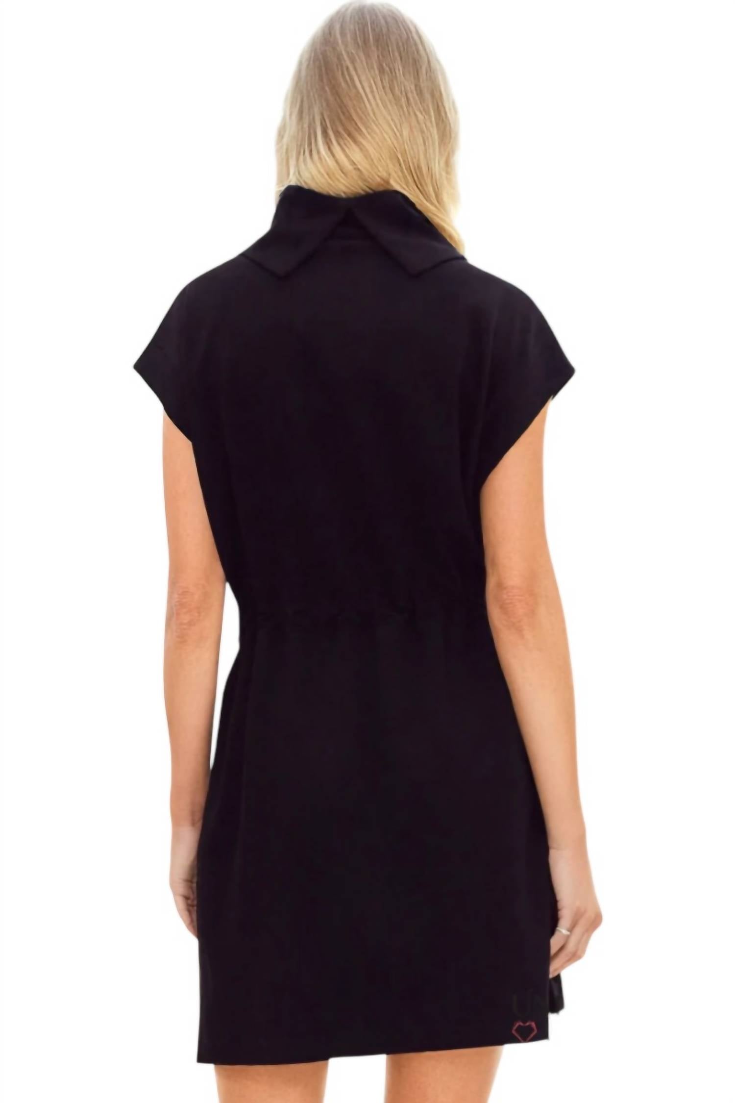 Perfect blend of comfort and style. Featuring cap sleeves and a unique mock neckline design. Black sheath dress offers a flattering silhouette with its adjustable drawstring waist and convenient side pockets. Crafted from a soft and durable blend of 55% Rayon, 40% Polyester, and 5% Spandex. Designed for easy pull-on wear. Fits true to size. Simple to care for with hand wash instructions.