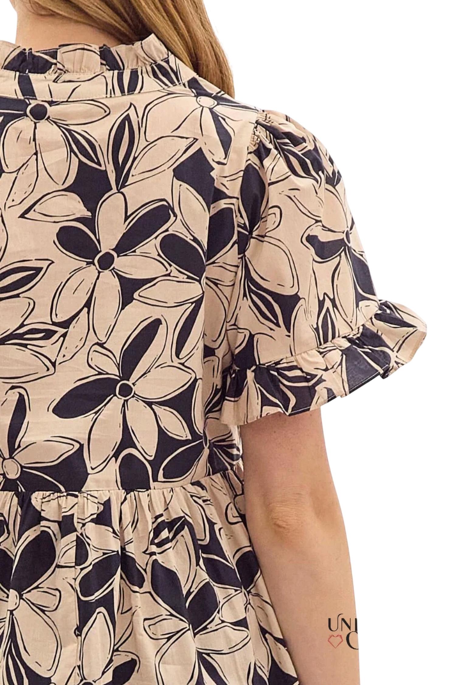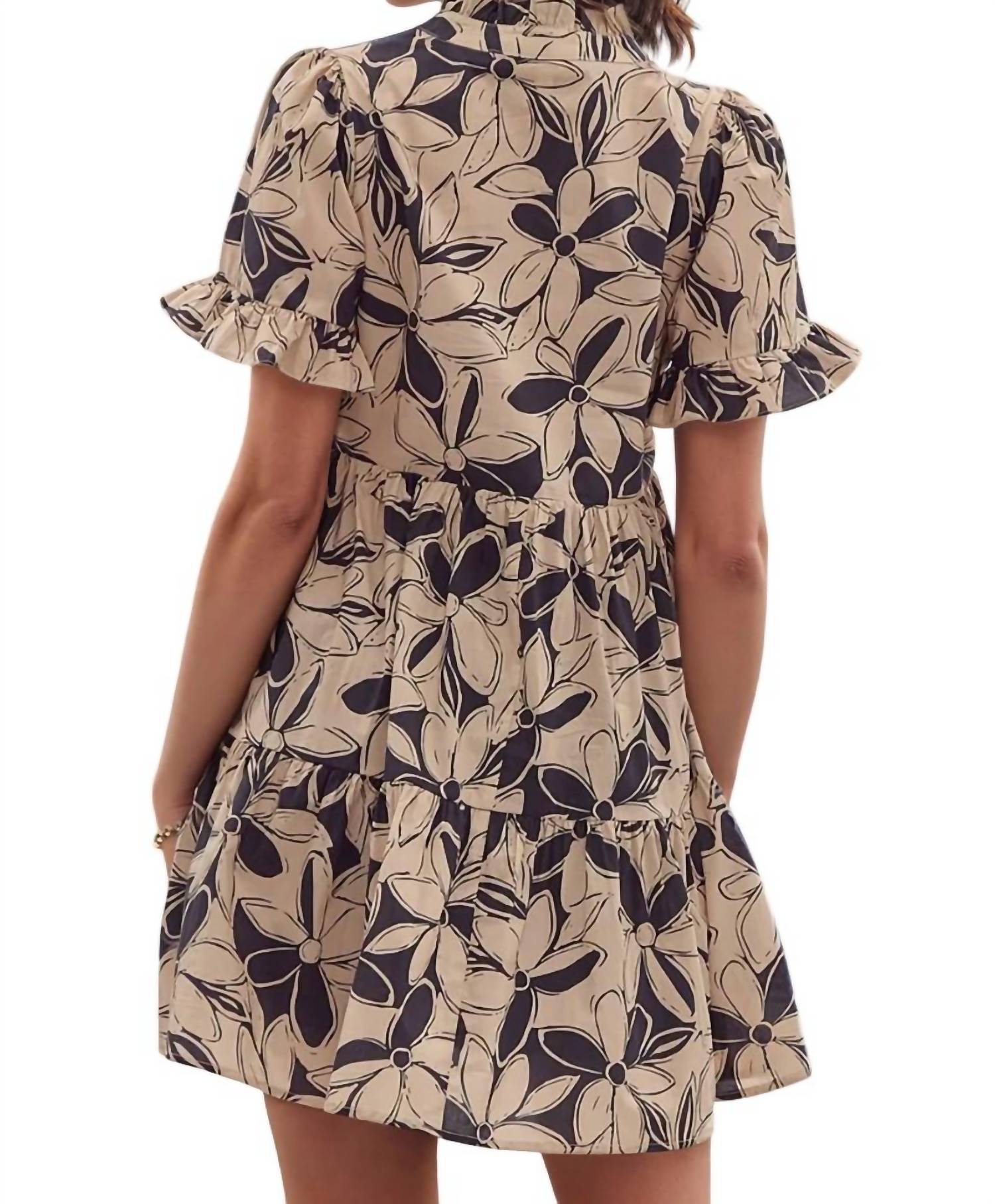 Entro - Heather Floral Print Ruffle Collar Mini Dress