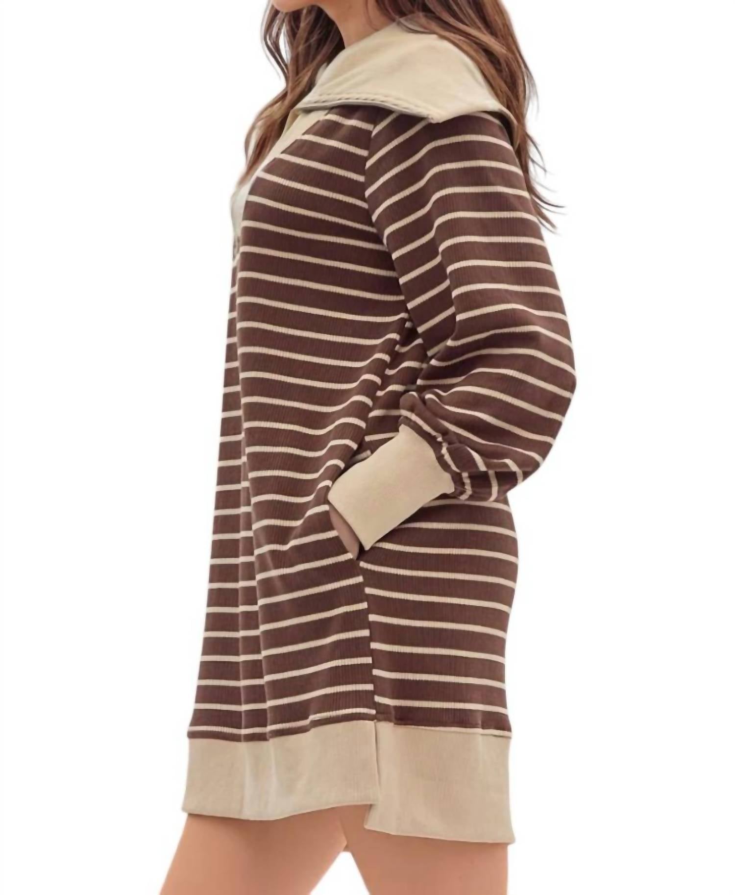 Entro - Misha Stripped Zipper Neckline Sweatshirt Dress
